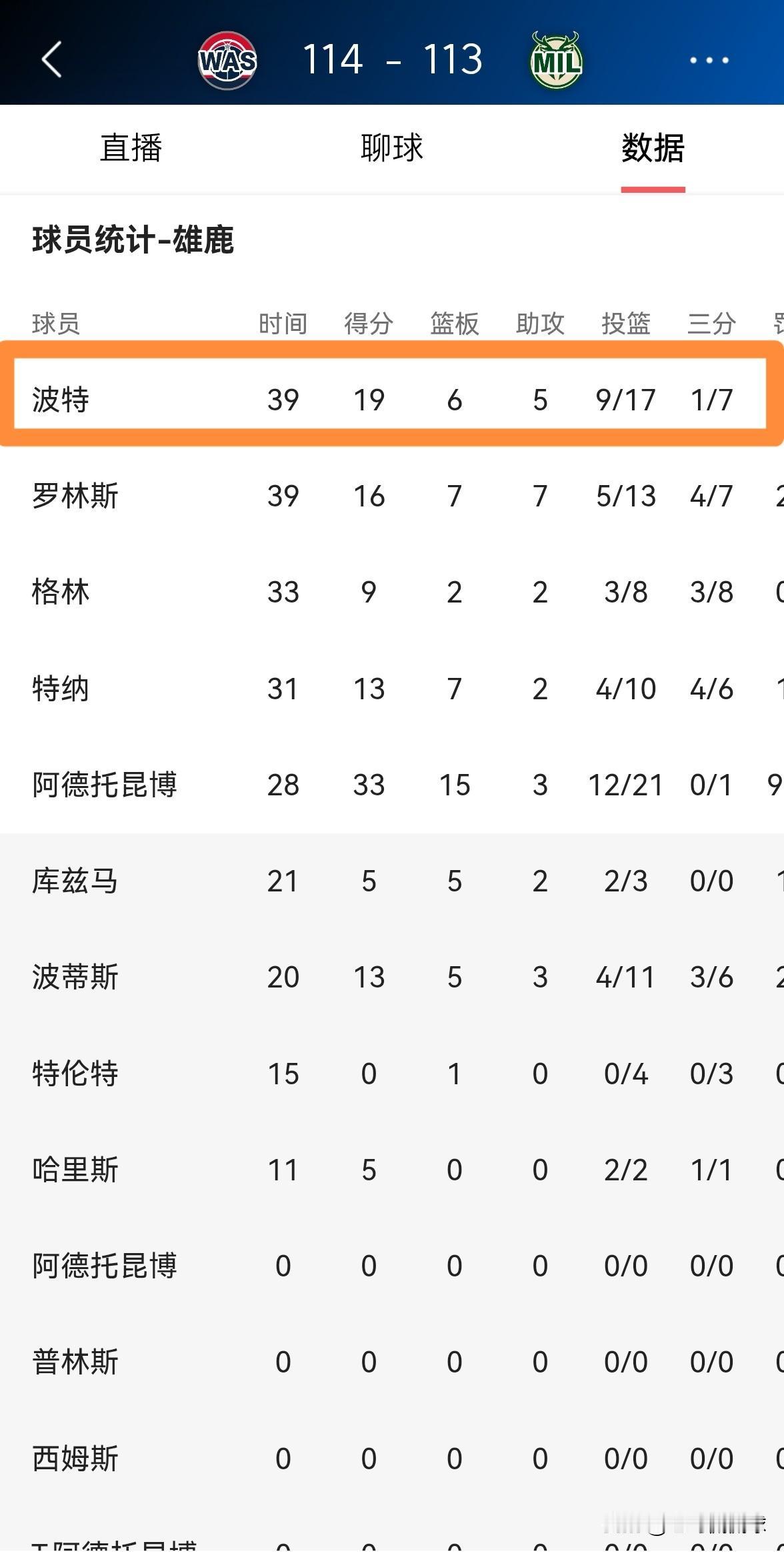 谁能拯救一下雄鹿大将小波特的三分球?在今天雄鹿主场以113:114惜败于奇才的比赛中,虽然小波特的整体进攻状态非常火热,但是他的三分投篮手感却异常冰凉。 全场比赛下来,小波特首发出战39分钟,投篮17中9,其中三分球7中1得到19分6篮板5助攻,他的场上正负值为+10。 坦白说,如果小波特想再签下一份大合同的话,那么他必须提高自己的三分球命中率,毕竟不擅长投三分的后卫很难签下大合同。