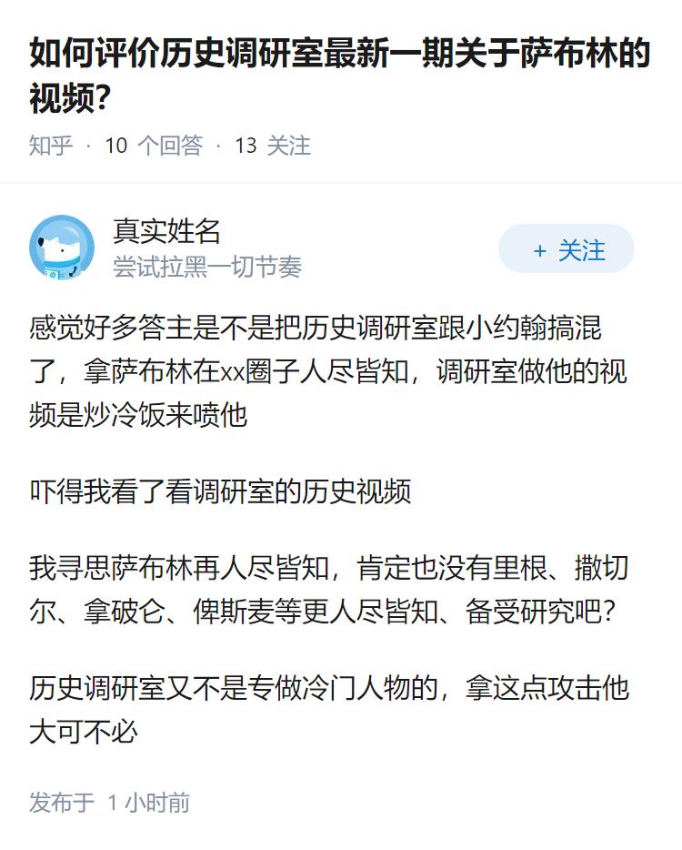 如何评价历史调研室最新一期关于萨布林的视频?