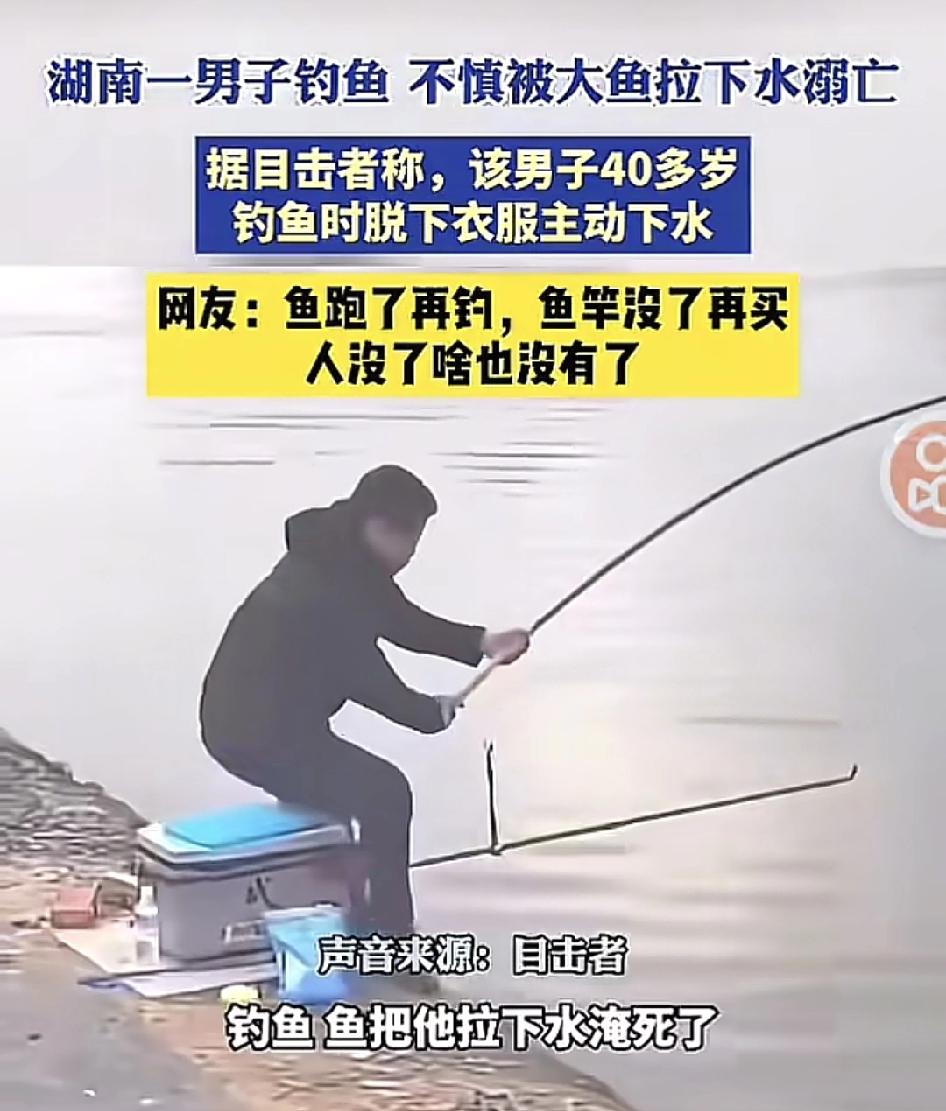 湖南常德一男子在河边钓鱼。当时衣服都脱放在一边,不慎鱼就把他拉下水,导致其溺亡。很多网友说这种情况并不少见,有的钓鱼者为了拿鱼竿跳下水里去找鱼缸,这种都是非常不理智的行为,鱼缸没了可以再买,但是人没了就真的没有了。钓鱼也讲究周边的环境和一点技术。