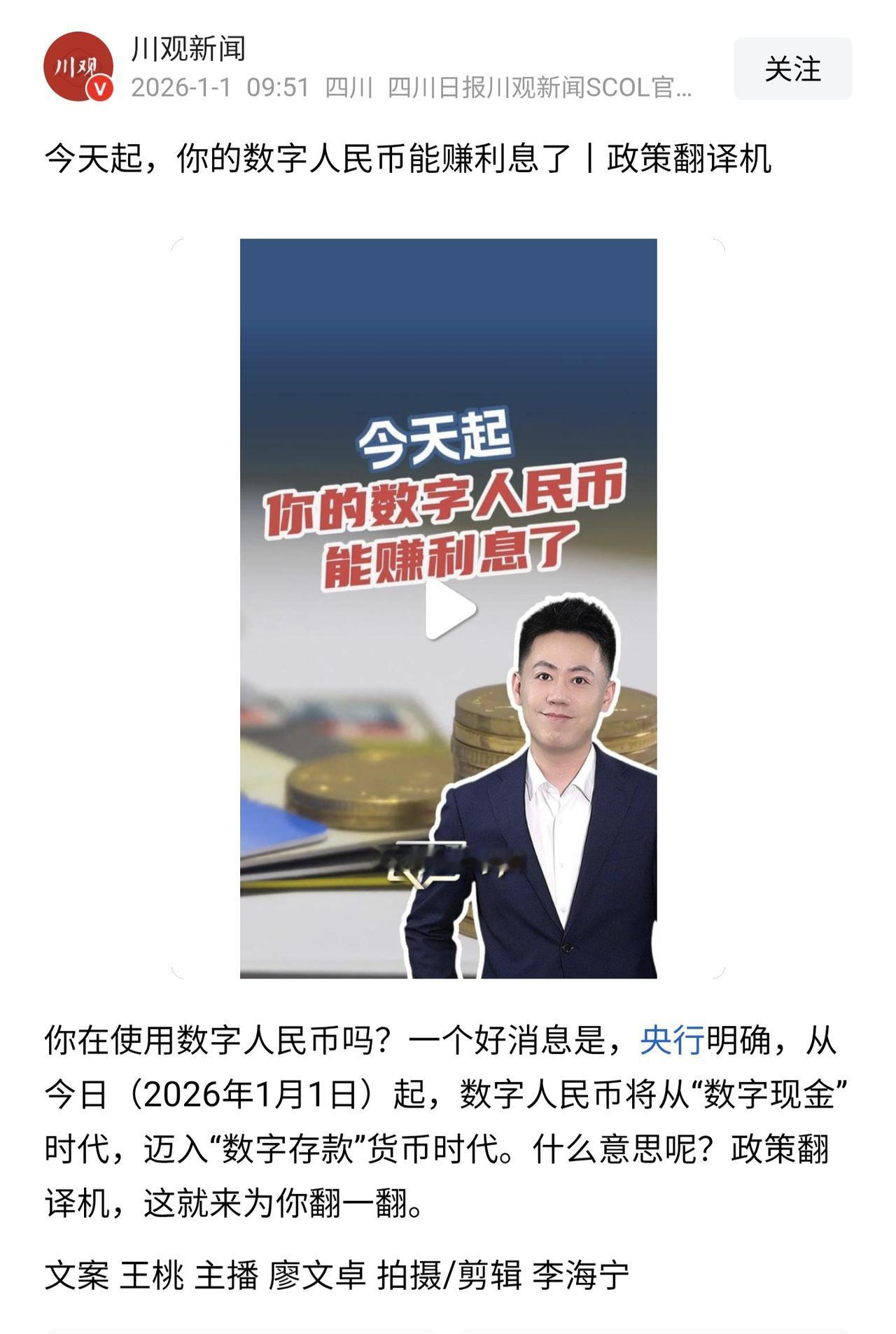 到底什么是数字人民币。它跟微信支付宝的区别在哪?有什么独特优势?一文给你讲清楚。 今天看到新闻,说数字人民币开始计息了,好像数字人民币推广了很多年,现在还没有普及到我们身边。 其实数字人民币一点不复杂说穿了就一句话,数字人民币,就是国家直接发到你手机里的现金,而不是你放在微信支付宝里的钱。 举个例子就好明白,你钱包里有张100元纸币,这是现金(M0)。你把它存进银行,银行卡里数字变成100,这是存款(M1)。你把银行卡绑到微信,微信零钱显示100,这是第三方支付余额。 数字人民币呢,就是第一步那个100元现金的电子版。它没有经过经过商业银行存款体系,直接由央行放到你的数字钱包里。 那它比微信支付宝强在哪? 根据国家的宣传介绍,我觉得它最大的王牌是 “双离线支付” 。就是比如朋友之间账户转账,但是没有网没有信号,但是手机碰一碰就能付钱。想想地下车库、山区、飞机上,或者哪天网络瘫了,数字人民币支付不就派上用场了吗? 另外从今年起,你数字钱包里的钱,和存银行一样开始计活期利息了,而且跟银行一样受存款保险保障,就是50万以内给你保障到底,安全性要高于放微信、支付宝(毕竟但凡企业就有倒闭的风险)。 对我们普通人来说用处大吗? 我的理解是短期用不着,长期得备着。现在你买菜吃饭,继续用微信支付宝,一点问题没有。数字人民币的生态还不完善,但未来一定是大势所趋。 给大家提一个简单粗暴的建议,下次看到银行APP有开通数字钱包的提示,或者搞红包推广,花几分钟开通一下,领个红包,就当多一个数字零钱袋放着。平时不用管它,但在最极端、最需要的时候,手机里总有一种方式能把钱付出去。 这就像家里抽屉总会放点现金,不一定用但不能没有。数字人民币就是你手机里的那个电子抽屉。