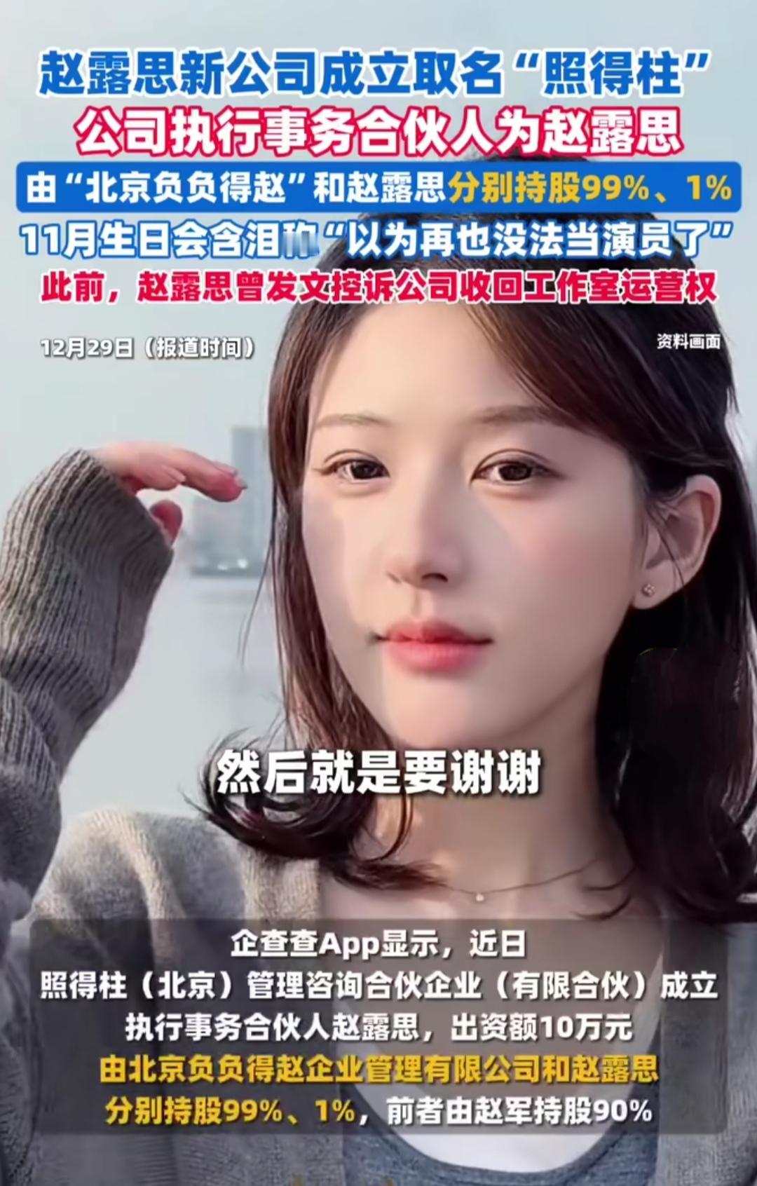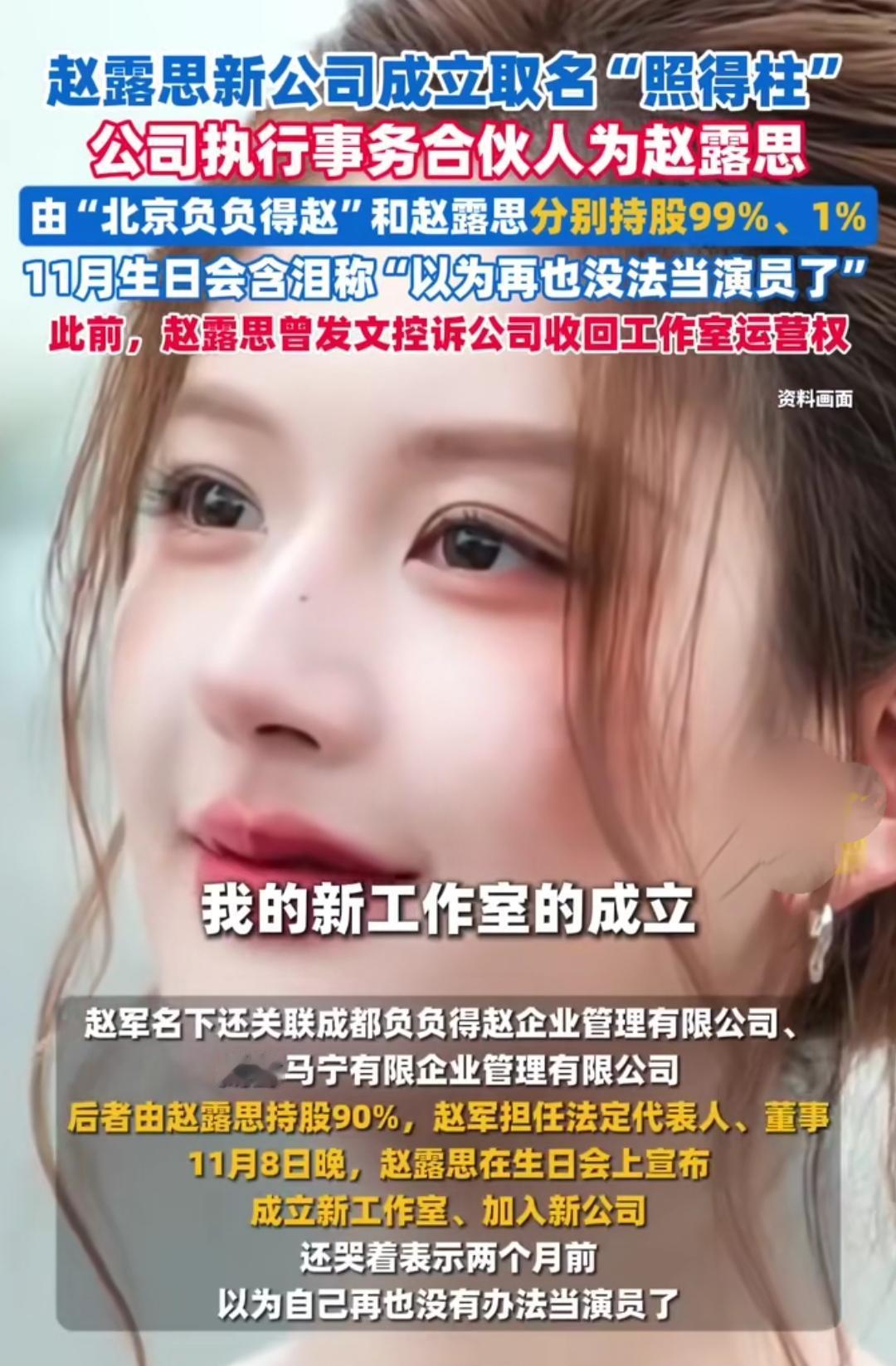 赵露思新公司取名“照得柱”,乍一听是俏皮的谐音梗,可扒出背后的经历,才发现这三个