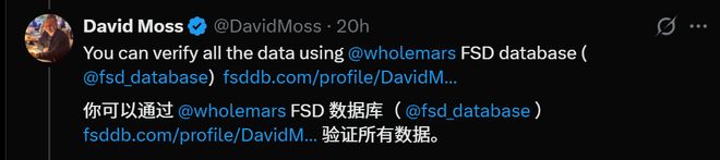 对于好奇的网友,Moss表示,你可以登录FSD数据库,验证所有数据。