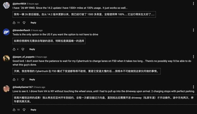 一位特斯拉车主赞叹:「我们已步入自动驾驶穿越美洲大陆的时代。」