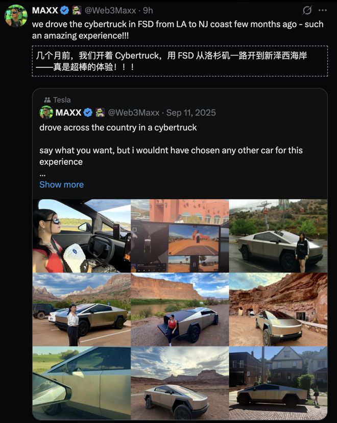 这场AI主导的公路旅行,直接震撼了全球特斯拉车主。