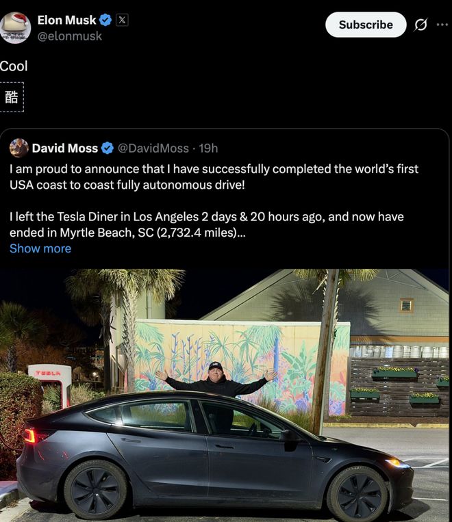 https://nypost.com/2025/12/31/tech/tesla-owner-completes-first-fully-autonomous-drive-across-america-and-elon-musk-weighs-in-on-the-historic-road-trip/