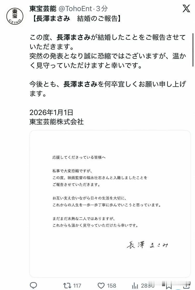 这都是什么事儿啊! 2026年,素有“第一单身女神”之称的日本女艺人长泽雅美竟然结婚了!她的结婚对象是比她大五岁的《幕府将军》导演福永壮志! 向来话题不断的长泽雅美,这些年先后传出过不少次婚外恋的消息,还曾被爆料与星级名厨有婚外情,然而福永壮志却是此前日媒从未曝光过的对象! 如今38岁的长泽雅美,是不是因为有了身孕所以才着急结婚呢? 福永在美国学习电影,也在美国拍摄电影和剧集,他俩究竟有什么交集呢?看来真得等日媒再深挖点料才行!