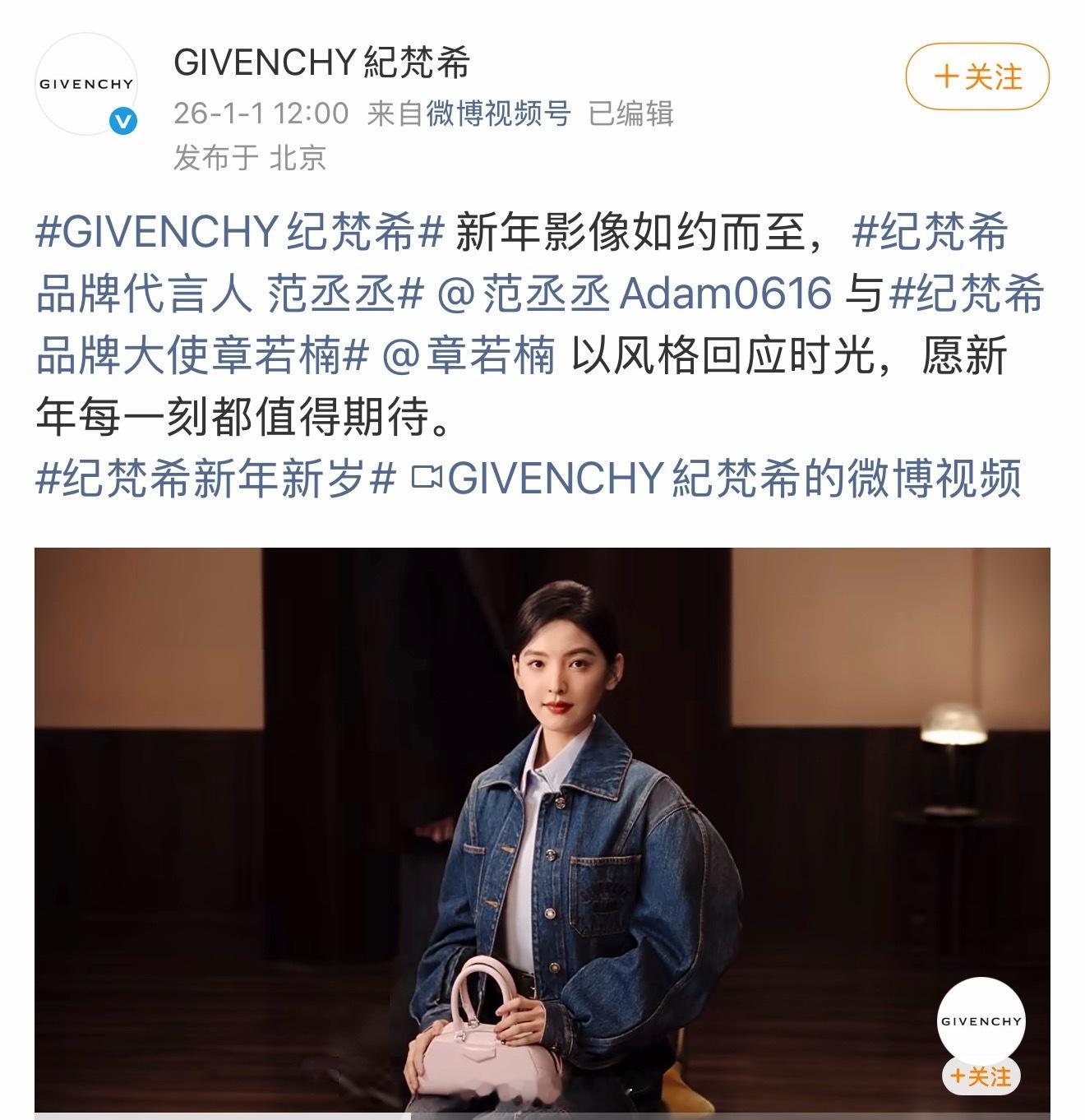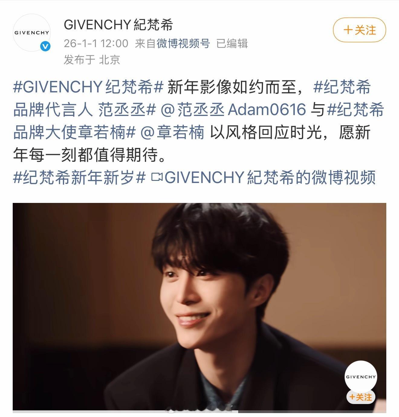 代言人范丞丞、品牌大使章若楠合拍的纪梵希新年大片好高级。