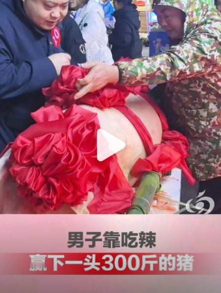 男子靠吃辣赢下一头300斤的猪不会第一天在厕所度过吧?不过不得不说,新疆大哥吃辣夺冠赢年猪,麻辣盛宴燃爆跨年夜,这波快乐真的不白来!
