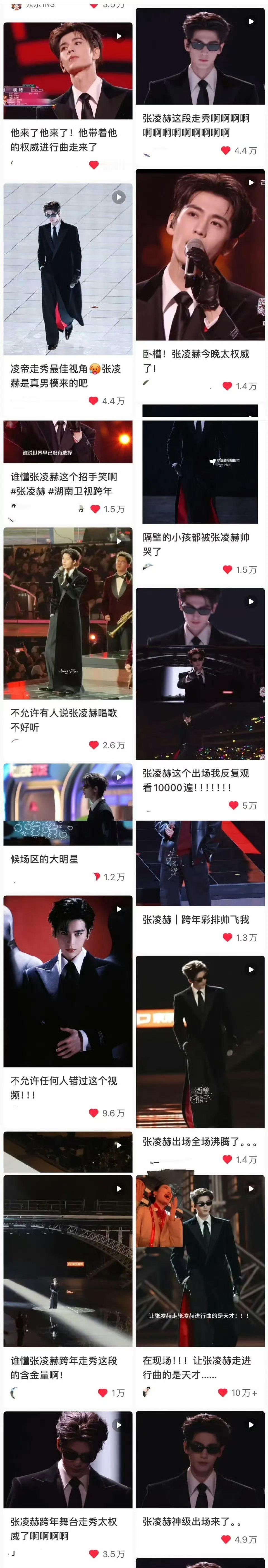 张凌赫跨年晚会舞台单人二创抖🎶百万赞👍🏻!其他视频也大出圈,被🥭台置顶!太红咯~