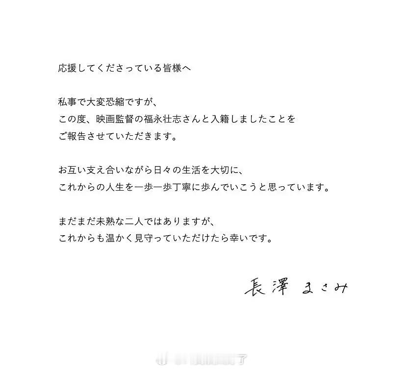 日娱结婚kpi来袭,长泽雅美结婚发表,男方是43岁新人电影导演。日娱是不是有新年官宣结婚的习俗?长泽雅美结婚