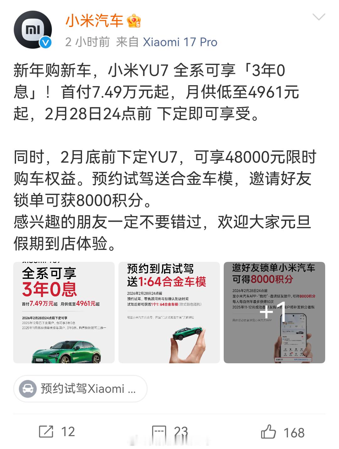 小米YU7 全系三年免息!这应该是应对购置税的,图二里有个三年免息和购置税补贴二选一。估计会有很多车企为了保订单都推出类似的政策。