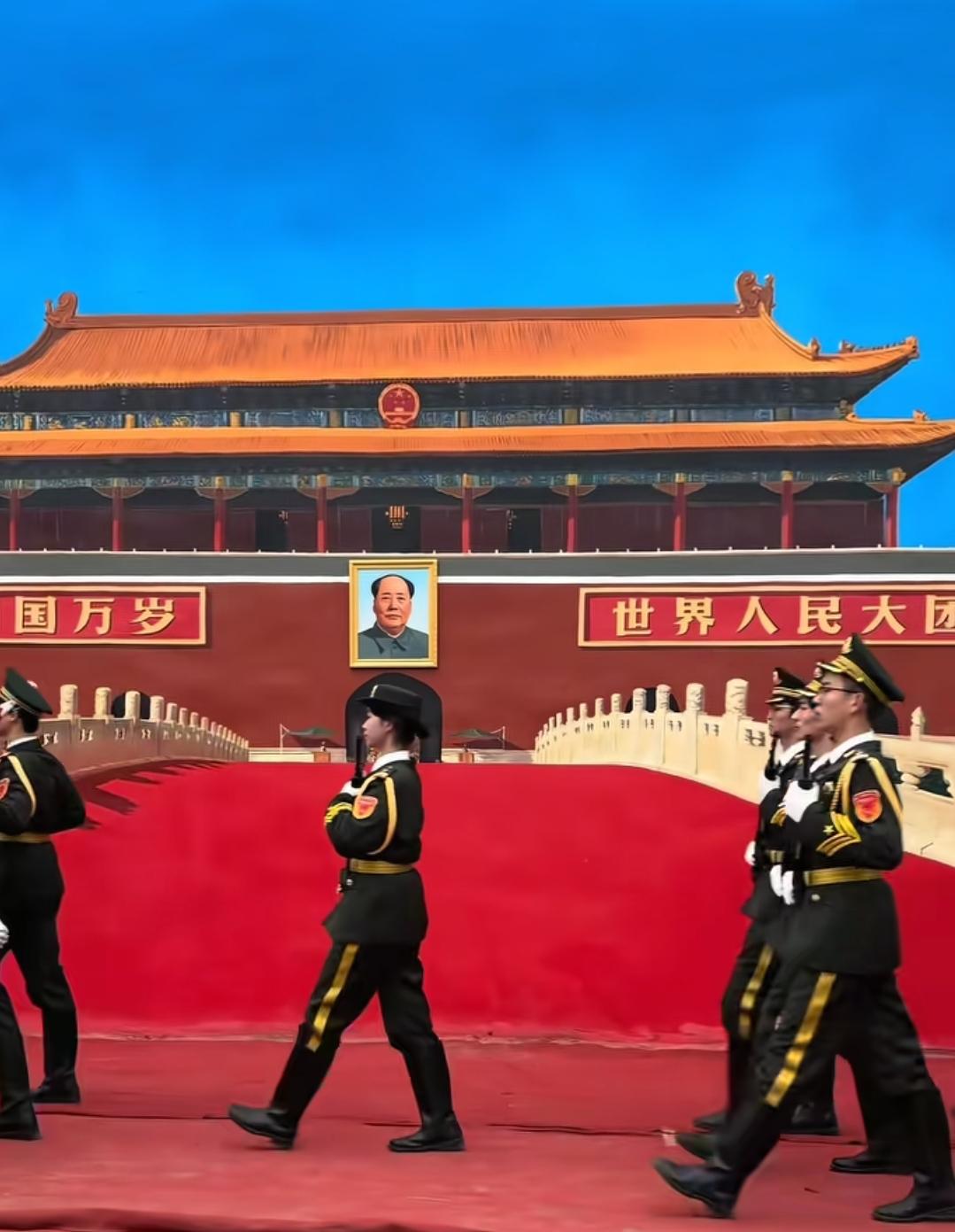 俺大河南吴营村墙绘天安门真的很让人震撼,创作者还邀请了高中母校的国旗护卫队来升旗,这也是在圆村里老人去北京看升旗的梦。 虽然这个天安门升旗是假的,但老人们很开心不是吗? 确实是让人很震撼,画的那么逼真,有才的人也在民间。