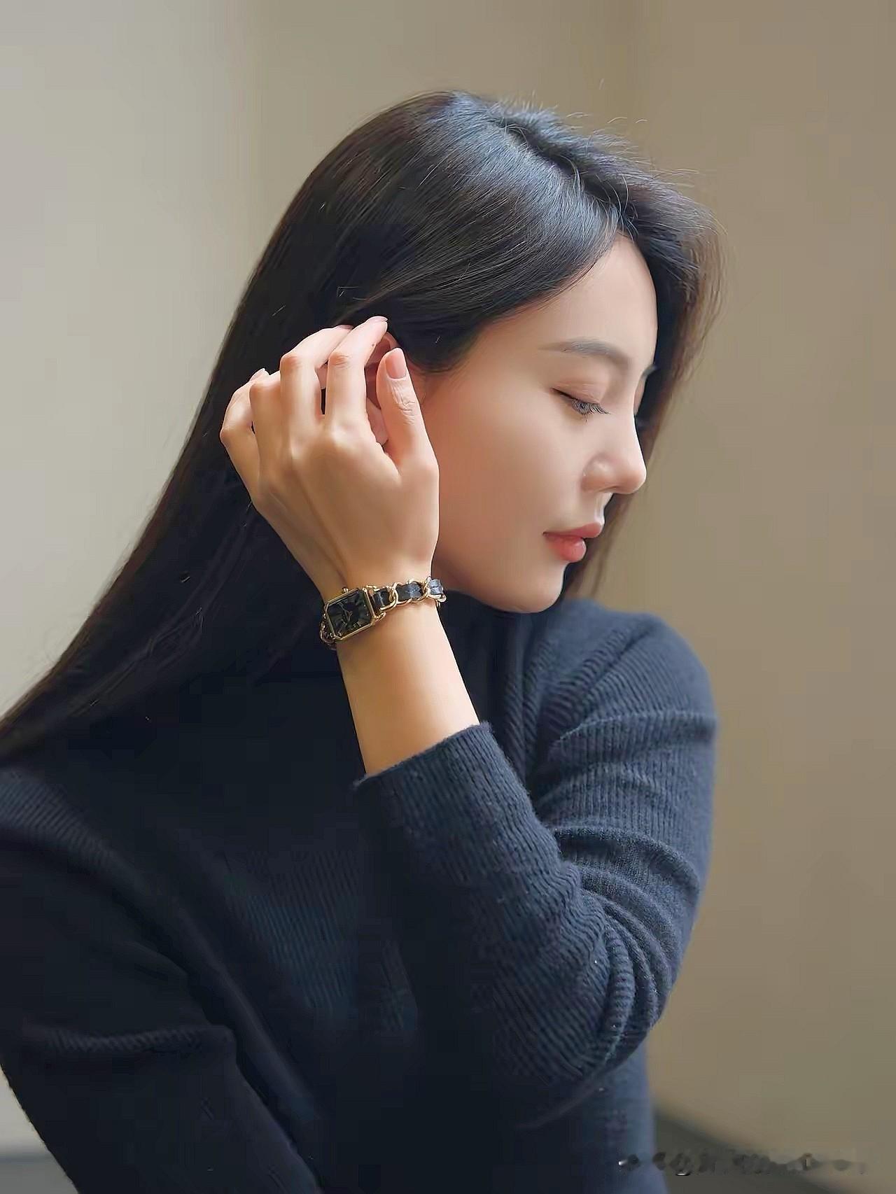 温柔微笑,岁月静好,黑衣少女,优雅动人。