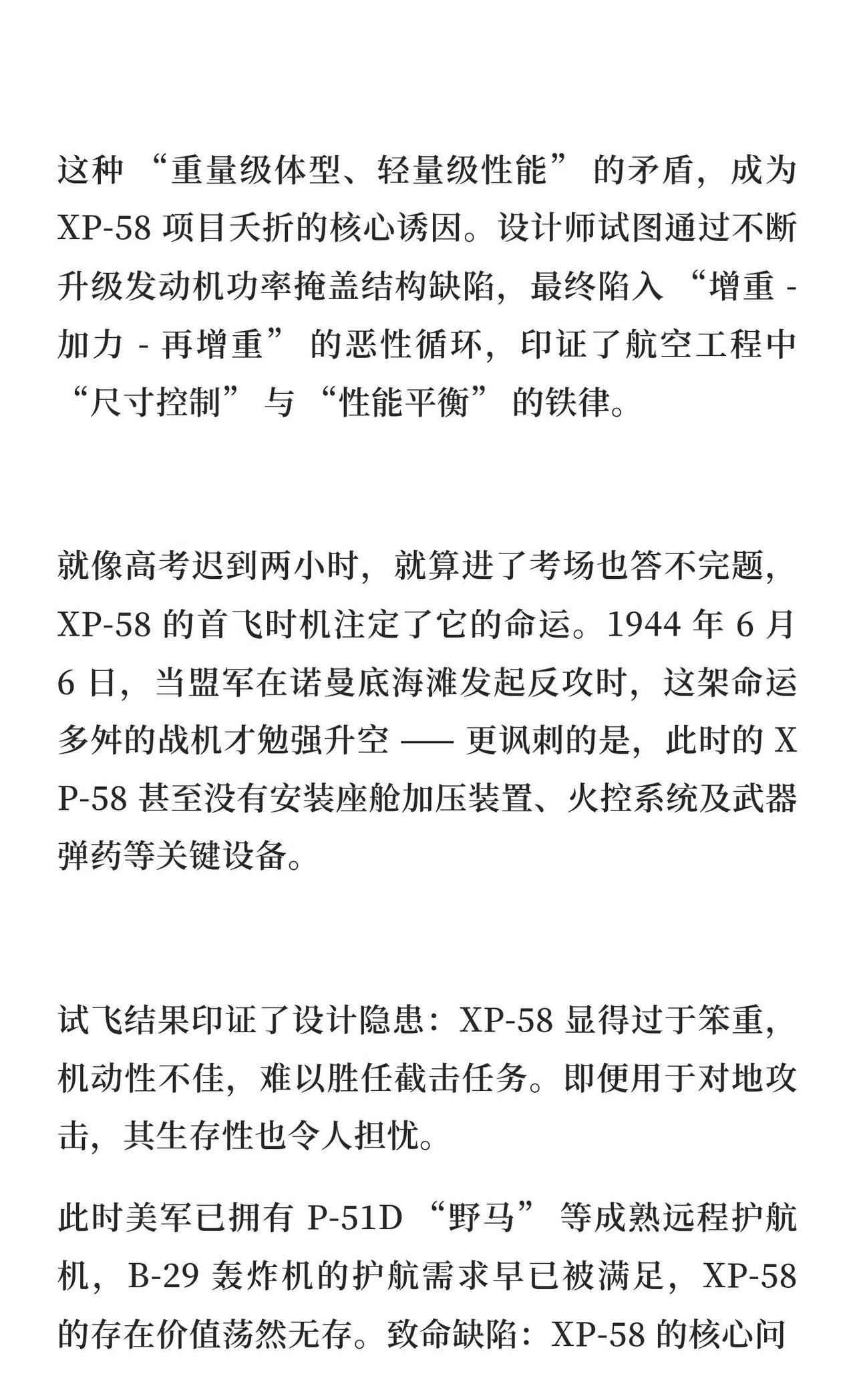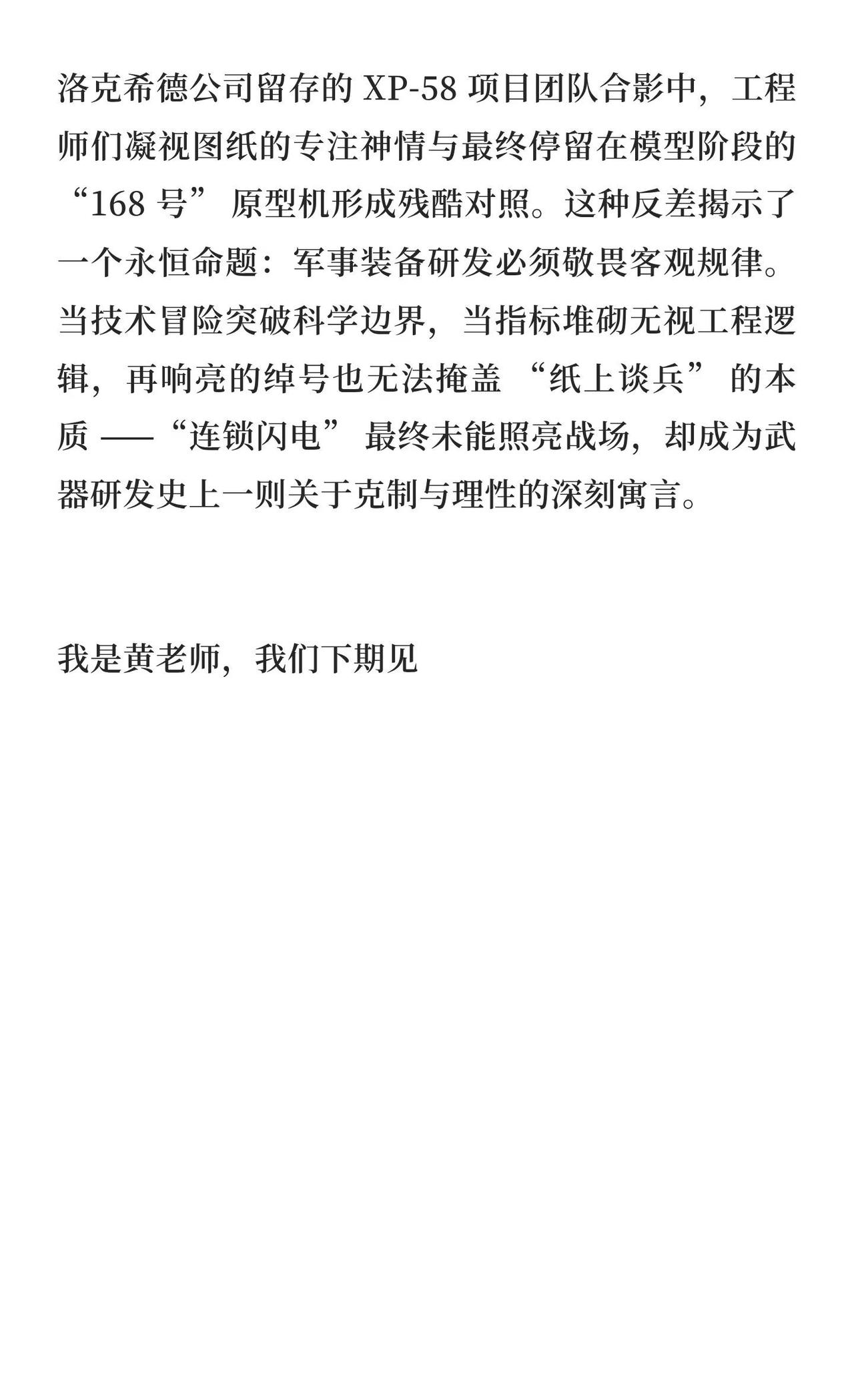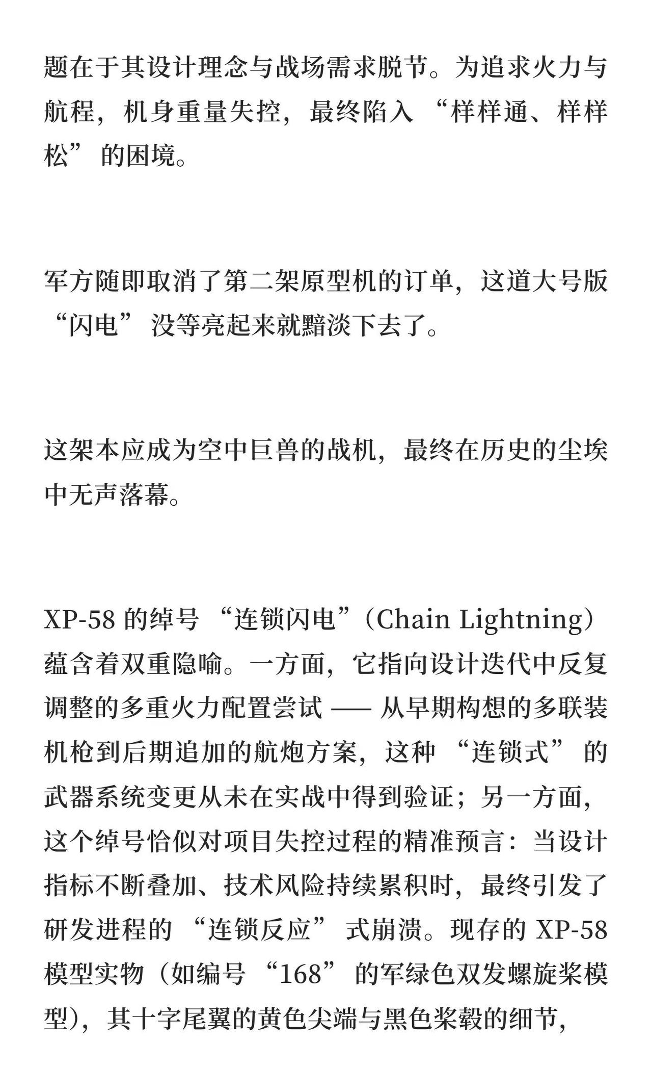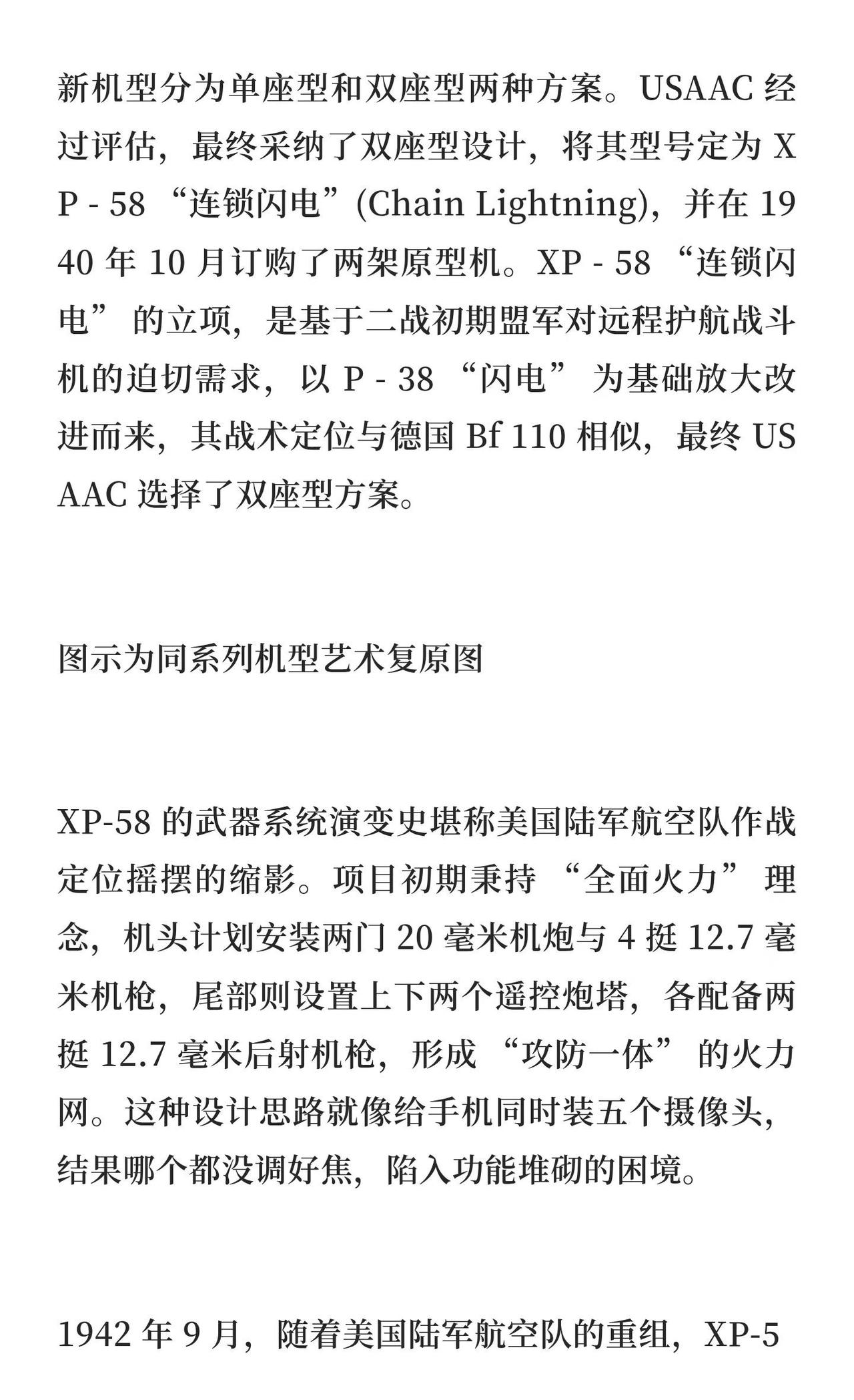 从空中巨兽到纸上谈兵:洛克希德 XP-58‘连 洛克希德XP-58“连锁闪电”因设计缺陷和战场需求错位,最终未能参战。其体型庞大、性能不佳,武器系统反复变更,动力系统选型拖延,最终因技术成熟度不足和战场需求变化而失败。航模黄老师 一起看飞机 航空航天 武器装备 军事 战斗机 机械设计 人类文明进程
