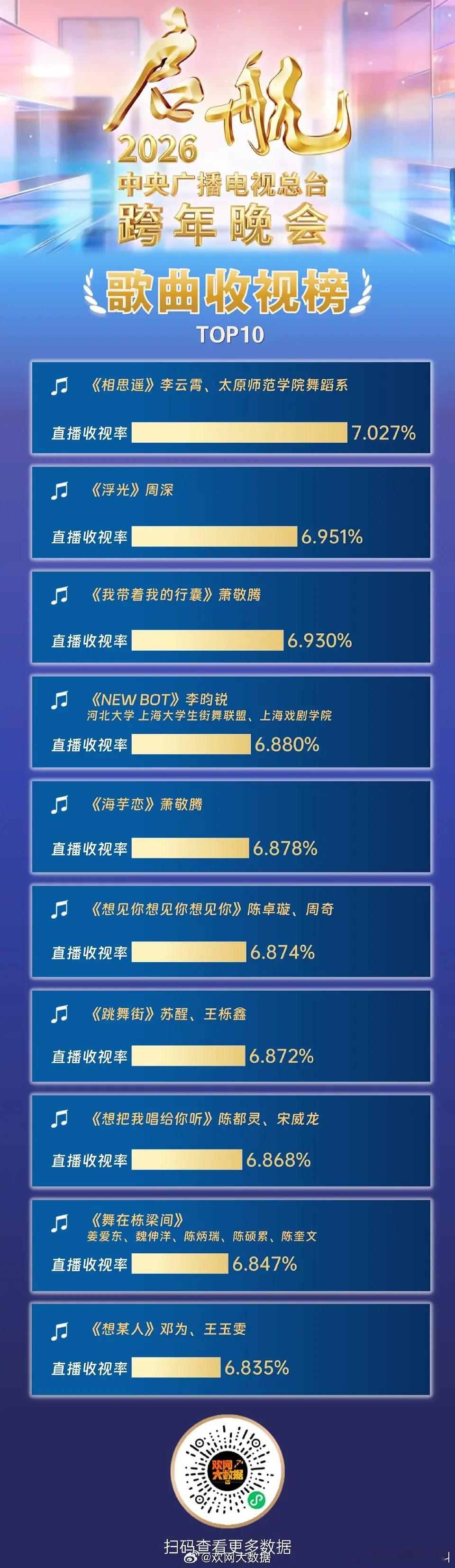 来看看目前跨年夜的收视亲情况:·相比较跨年晚会,全国更多的观众在看央一的晚间新闻