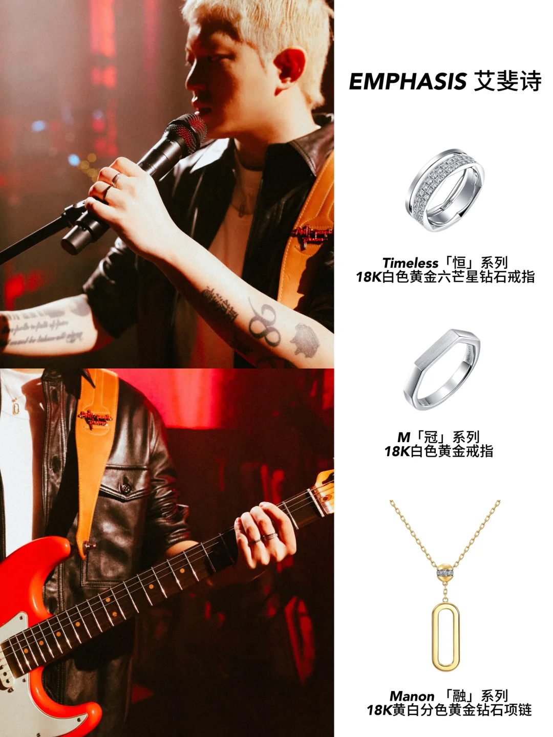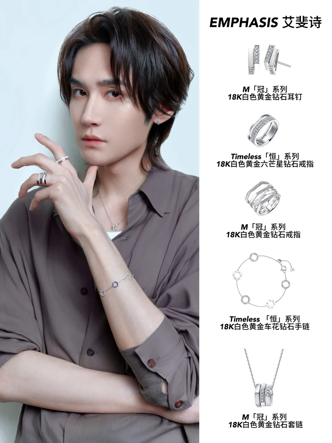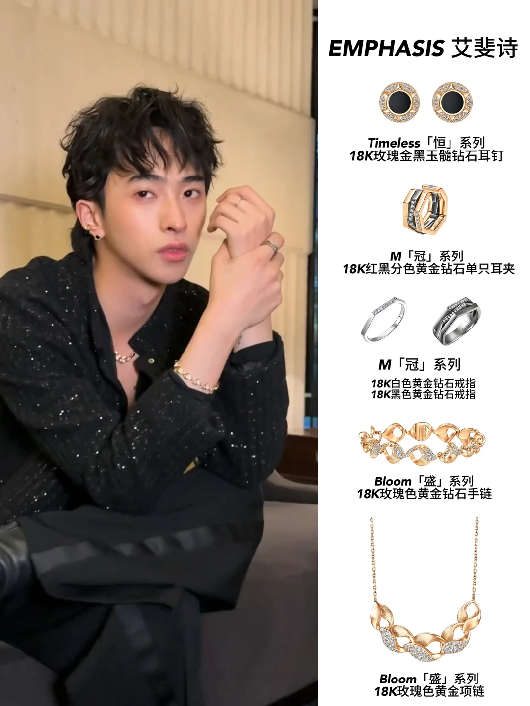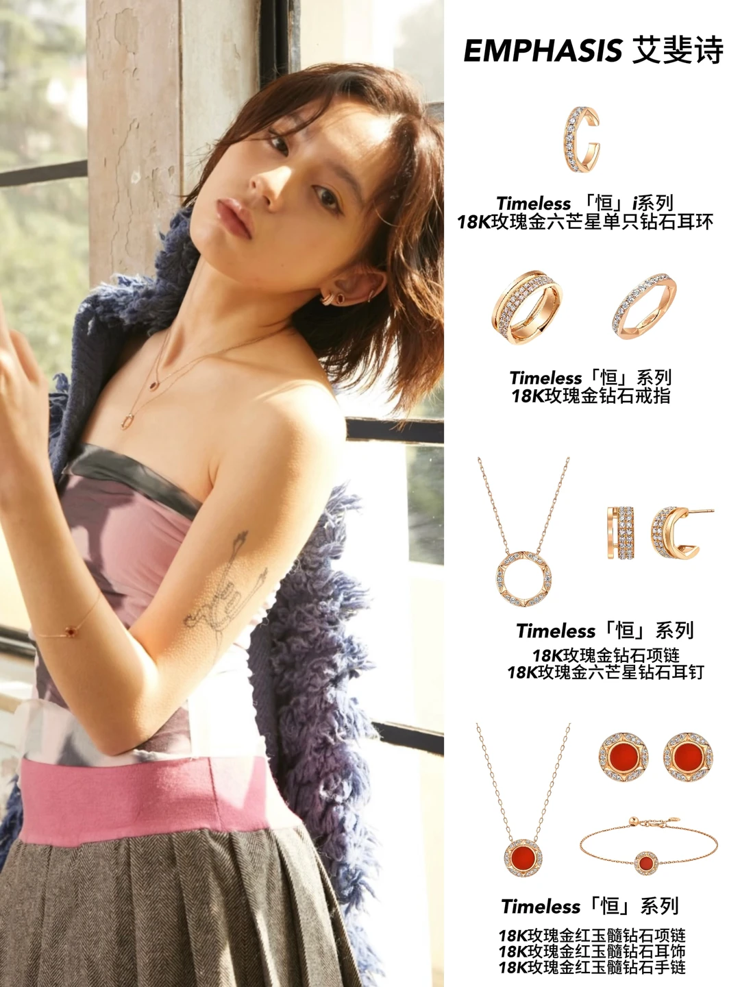 就说佘诗曼吧,私服里真的高频出镜EMPHASIS艾斐诗,设计完全抛开花里胡哨的潮流元素,只靠干净利落的线条和结构撑场面,妥妥的“长期主义”珠宝代表。