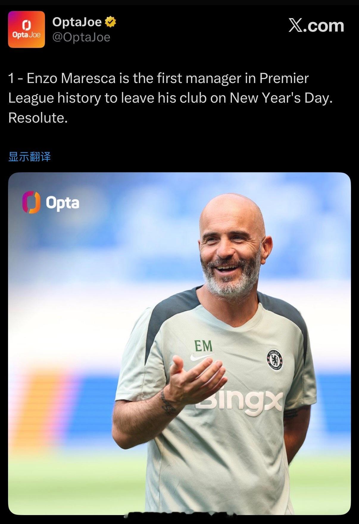 马雷斯卡是英超历史上第一个在元旦下课的主帅…英超联赛