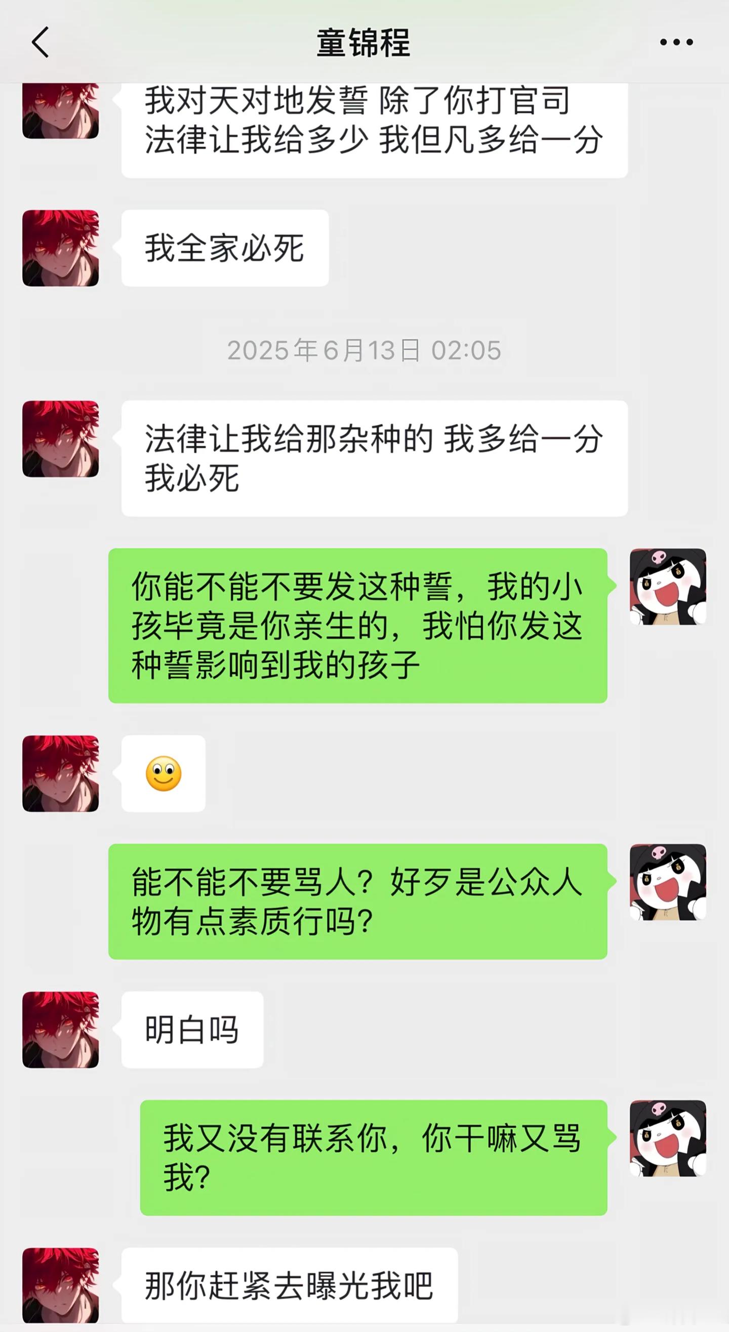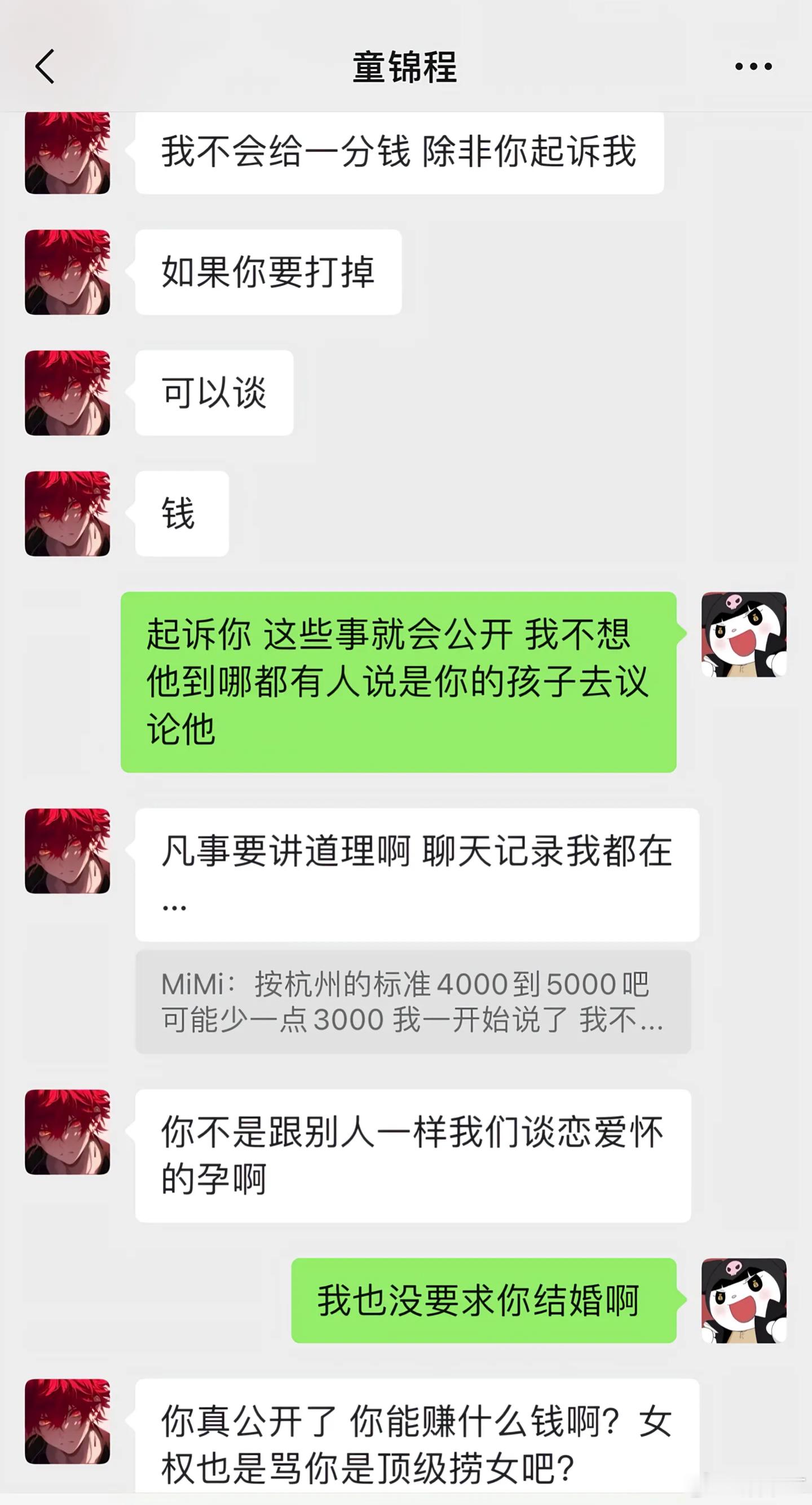 曝童锦程有孩子“我要纠正你,不是我获得你的钱,是你的孩子得到你的抚养费。五千也好