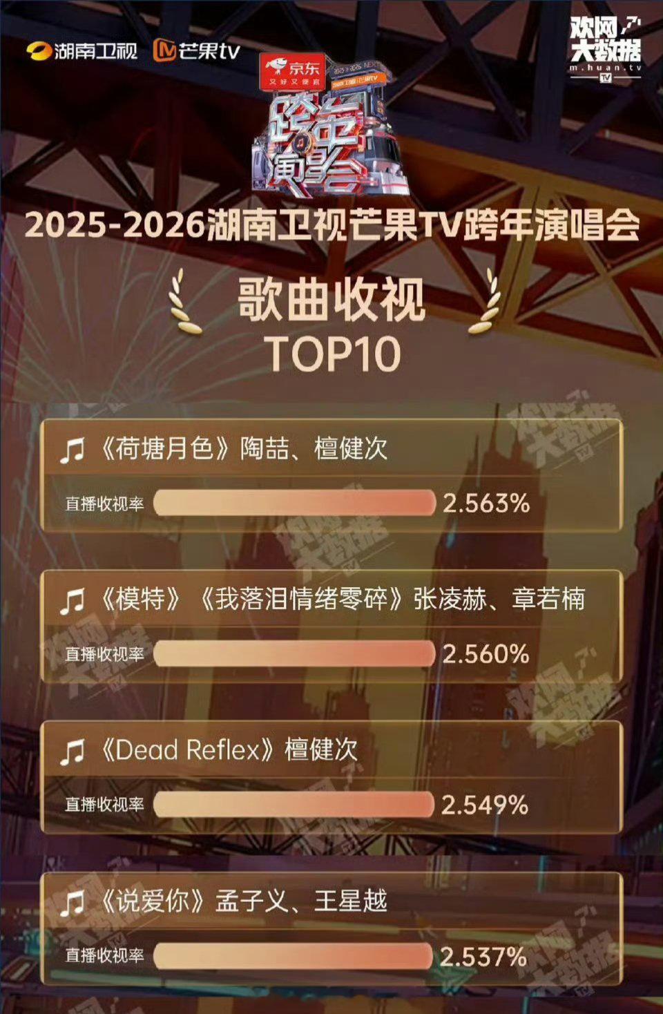 流量花生各大跨年晚会收视率top汇总🈶央视:李昀锐湖南:檀健次 陶喆江苏:罗云熙浙江:范丞丞
