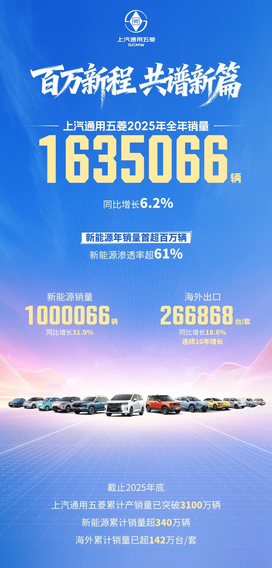 上汽通用五菱2025年累计销量超1635066辆1月1日,上汽通用五菱正式发布