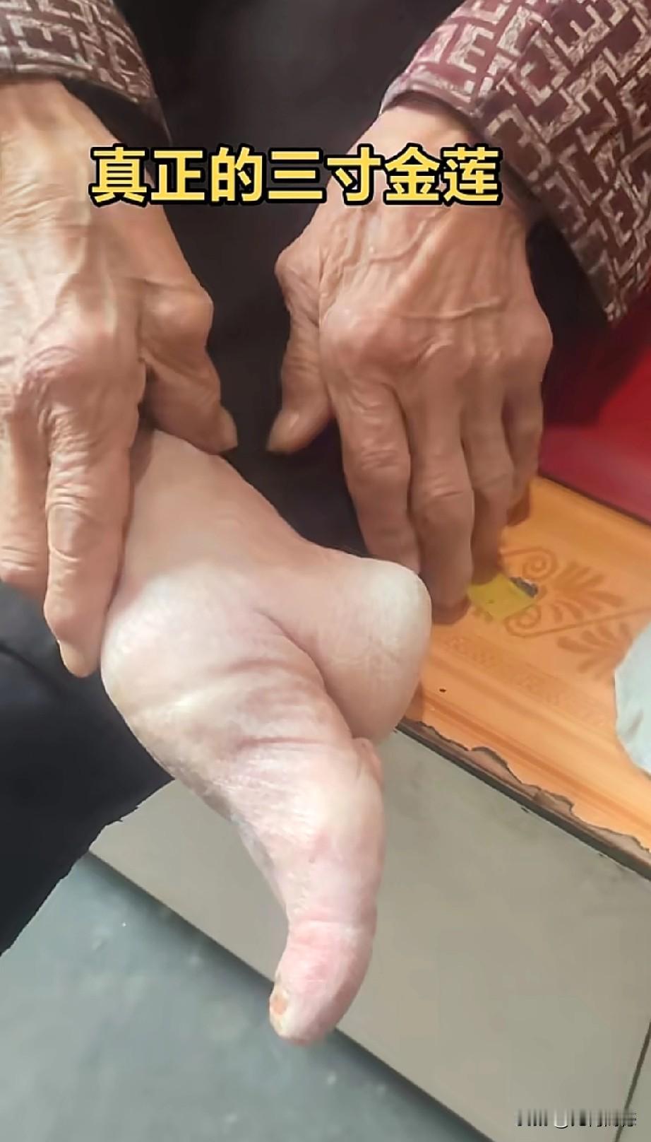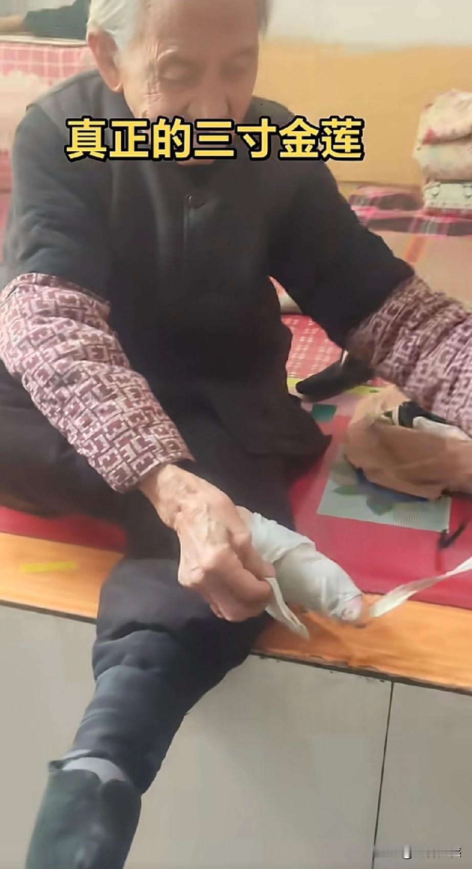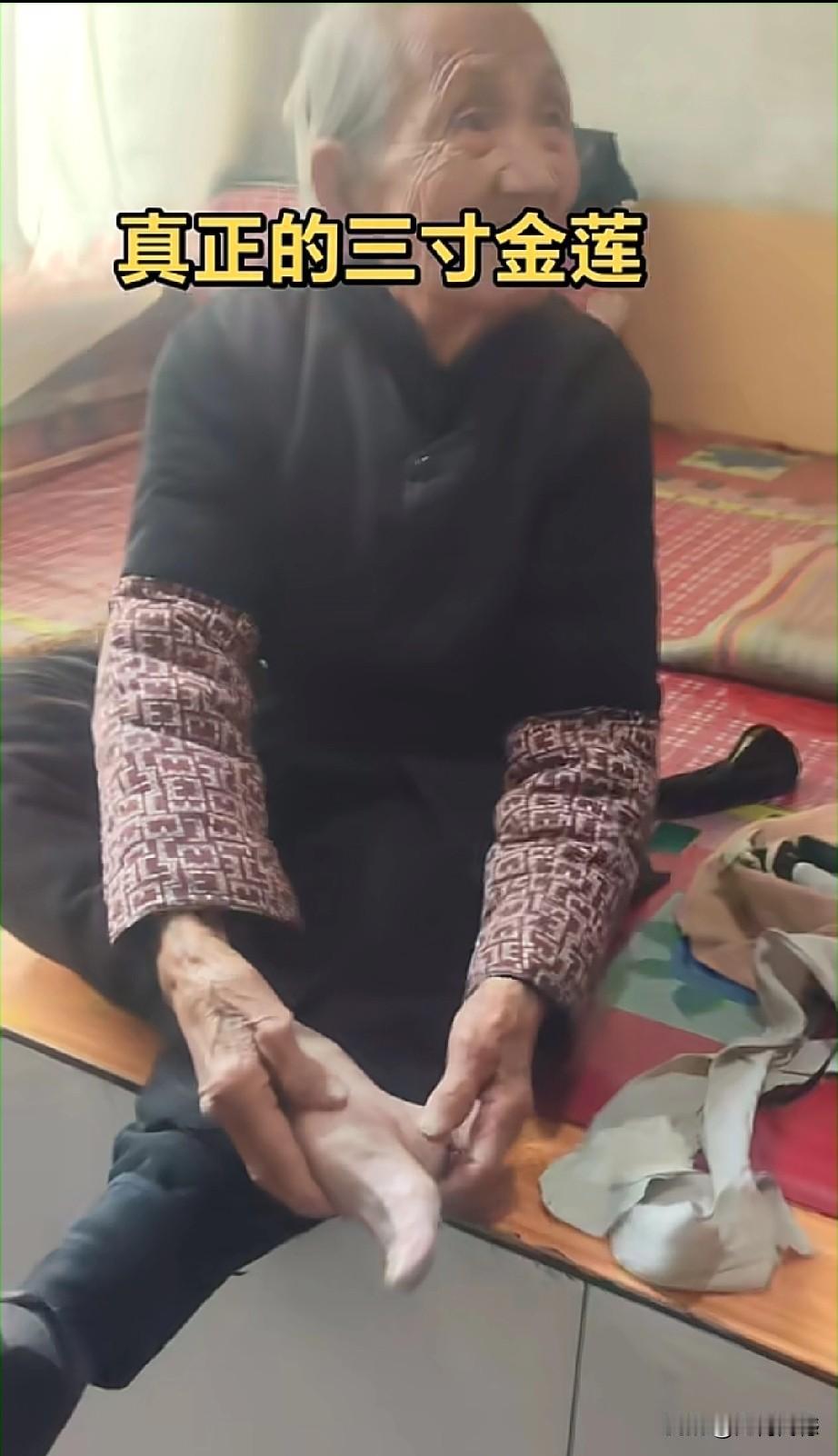这个老奶奶的小脚,就是从小被裹成了这个样子,现在这样的小脚老奶奶已经不多了!看到老奶奶的这双小脚,能够想象得到,老人这一辈子得吃过多少苦,尤其是在裹脚的时候,遭的罪是可想而知的。也不知道什么时候有了裹小脚的习俗,这种畸形的审美,不知害了多少女人!