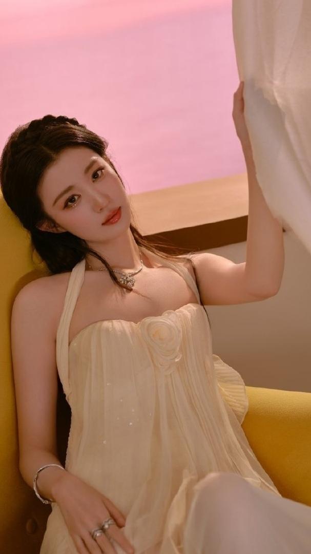 王楚然这组造型也太仙了吧✨ 浅杏色纱裙衬得肌肤胜雪,发丝轻扬的瞬间,温柔得像揉碎了晚霞揉进眼里~ 低头浅笑的模样,谁看了不心动啊💓王楚然 气质女明星 神仙颜值 分享好看的图哦