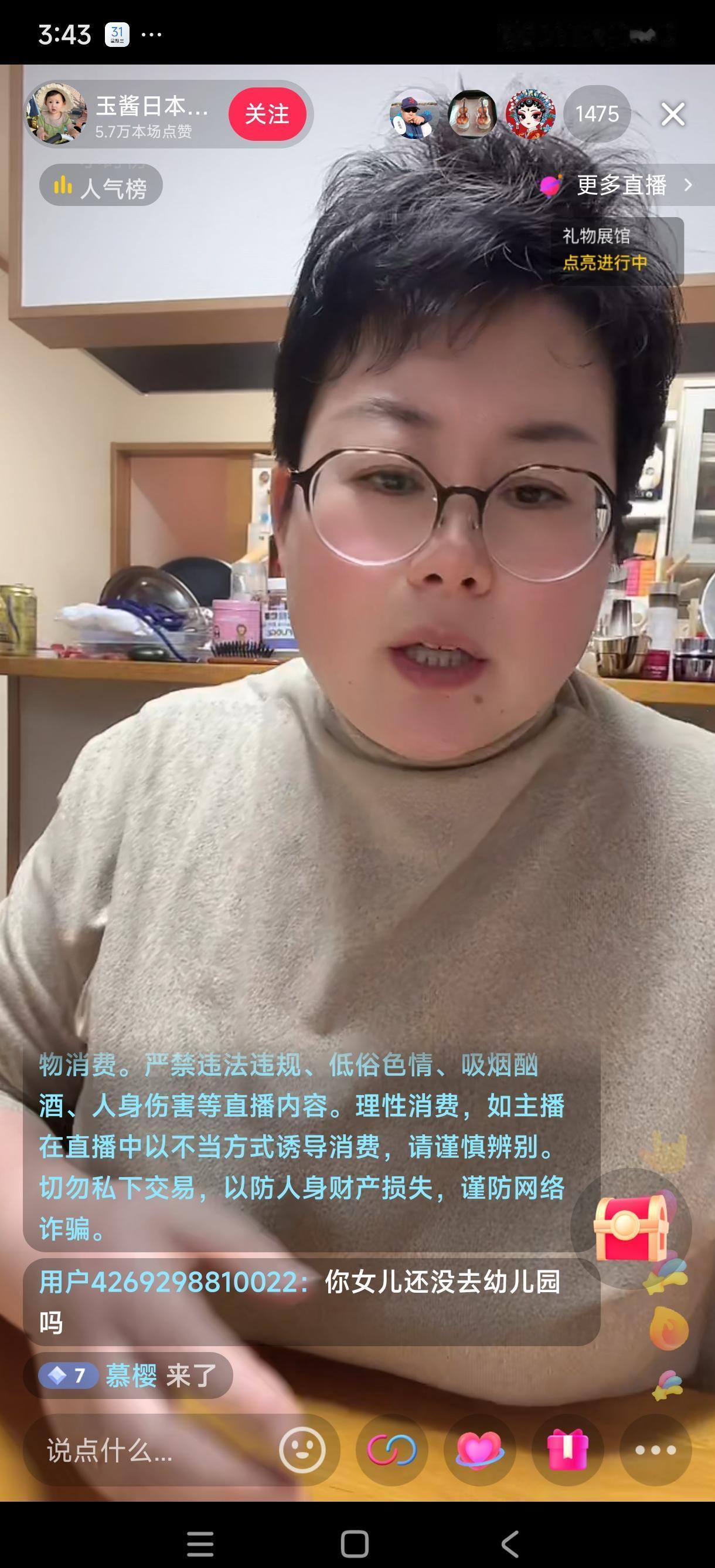 别再刷那些剧本演戏的直播了,看看玉酱家这1200人的烟火气。 山口拿着抹布,擦着榻榻米上的蛋糕碎屑,嘴里嘟囔着“过年也不搭把手”。 纳糖吃完蛋糕,直接瘫倒在客厅的暖炉边,一动不动。 玉酱对着镜头摆摆手,说直播就是想跟大伙儿聊聊天,不图啥流量。 镜头一转,大儿子刚进门,玉酱手里那盘刚出锅的糯米饼,热气腾腾。 谁能想到,几年前的年夜饭,只是超市打折的几块寿司。 那时候的拮据,换来了如今一屋子的吵闹和人情味。 你觉得,是直播改变了生活,还是生活本身才值得直播?