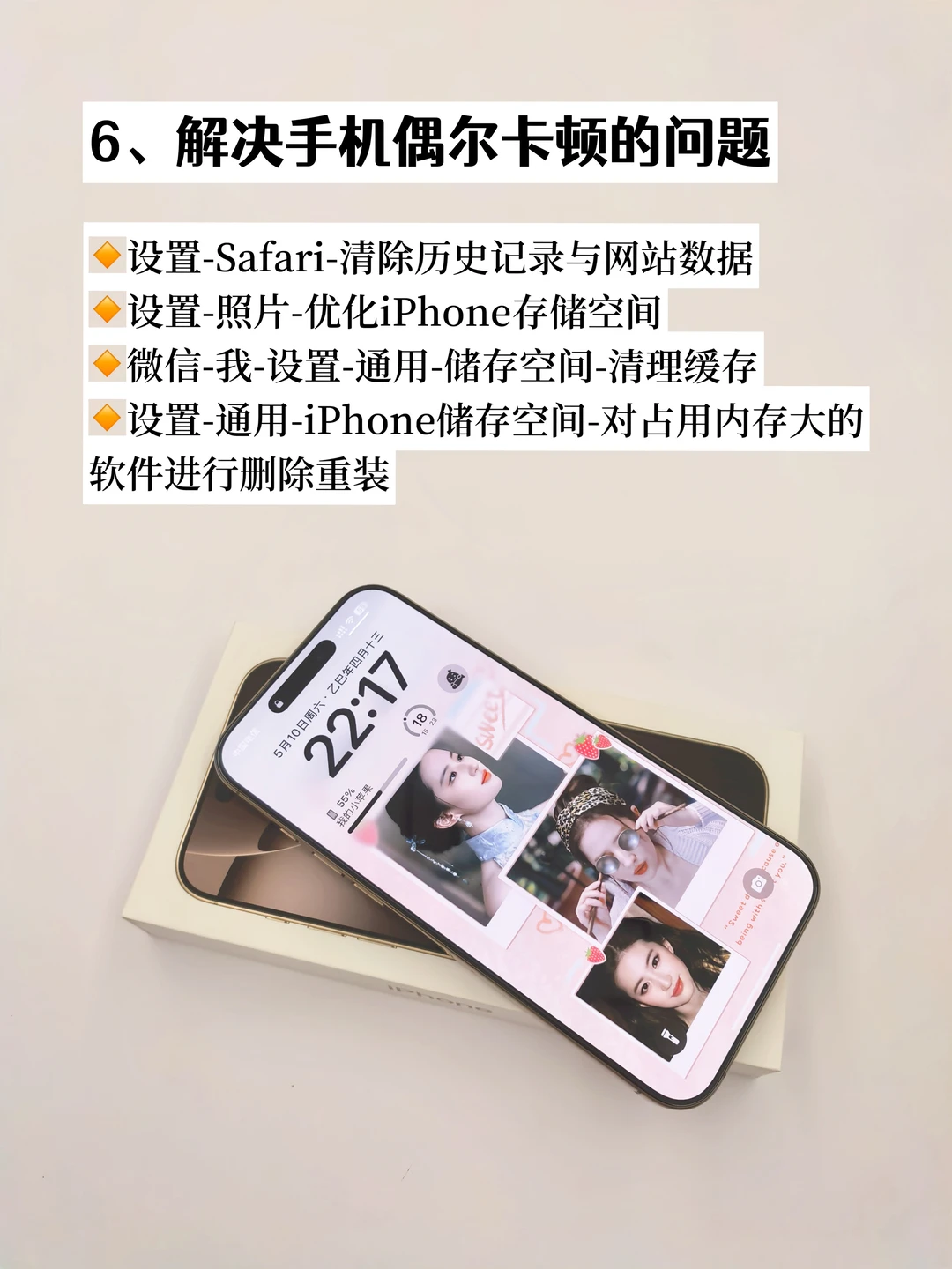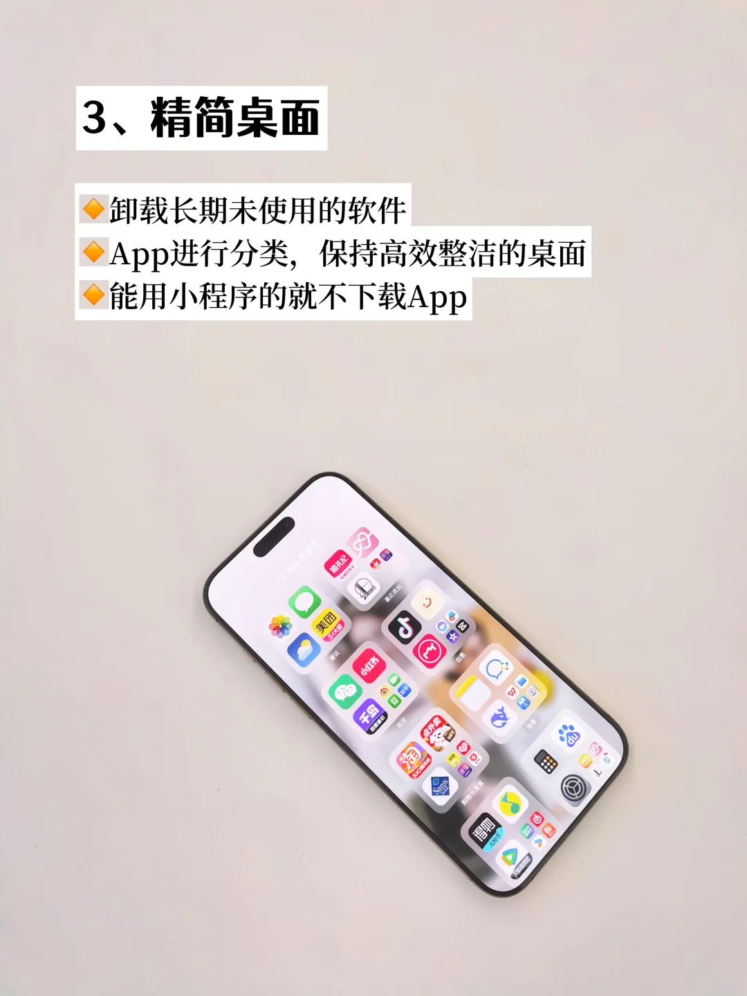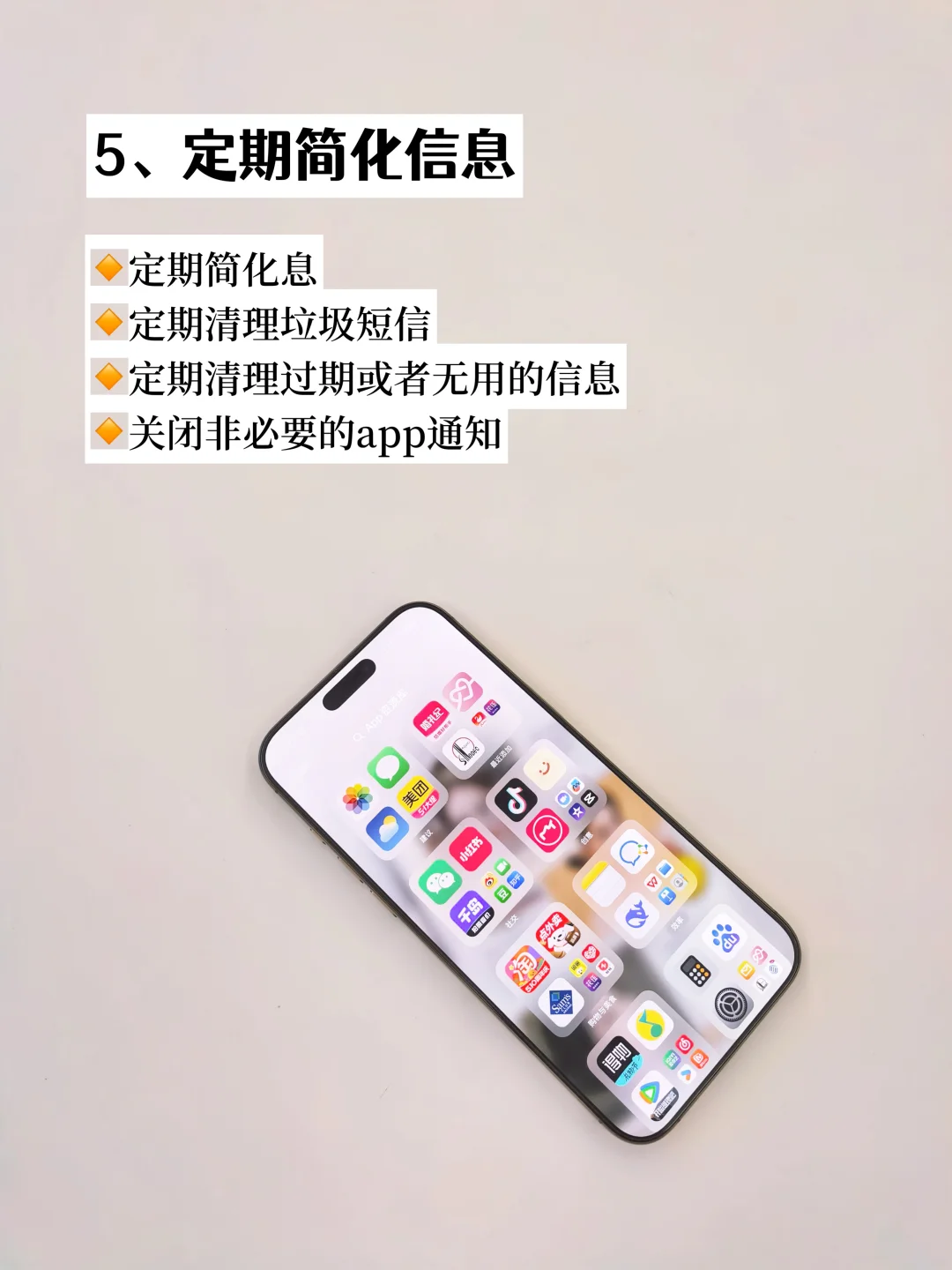 大家好[派对R],这里是努力搞钱,存到百万就退休的小猫👋 在电子产品日新月异的今天,对于电子产品我一直秉持长期主义的态度,制定一套科学合理的iPhone16 Promax 5年使用计划,不仅能充分发挥设备的潜能,还能带来长久的使用回报。 1️⃣维持电池健康的使用习惯 2️⃣延长电池续航的用机设置 3️⃣精简桌面 4️⃣定期简化内存 5️⃣定期简化信息 6️⃣解决手机偶尔卡顿的问题