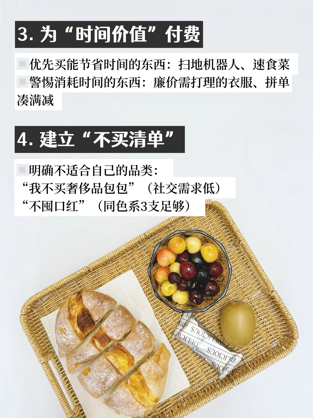 ▫️警惕消耗时间的东西:廉价需打理的衣服、拼单凑满减