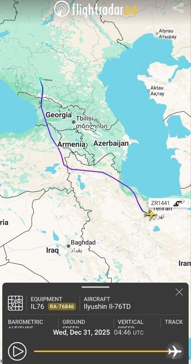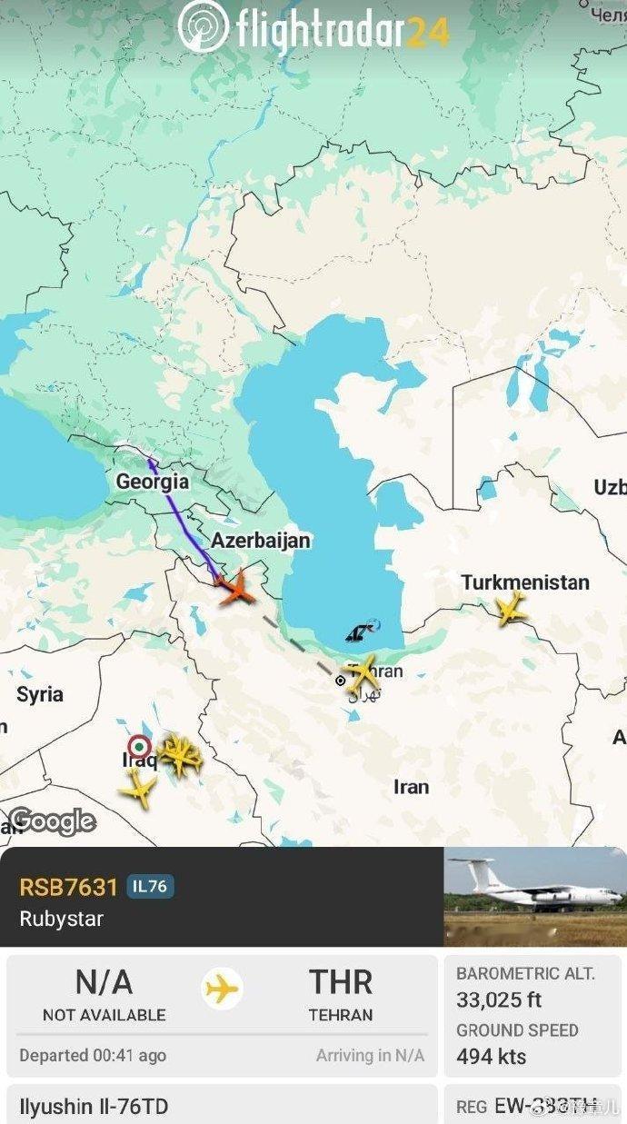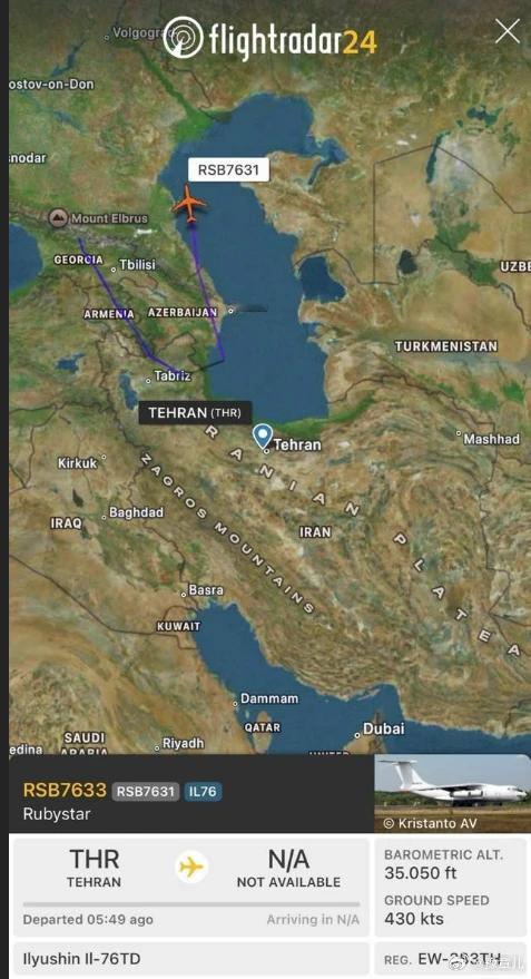 在2026年1月的过去24小时内,5架俄罗斯运输机飞往伊朗。