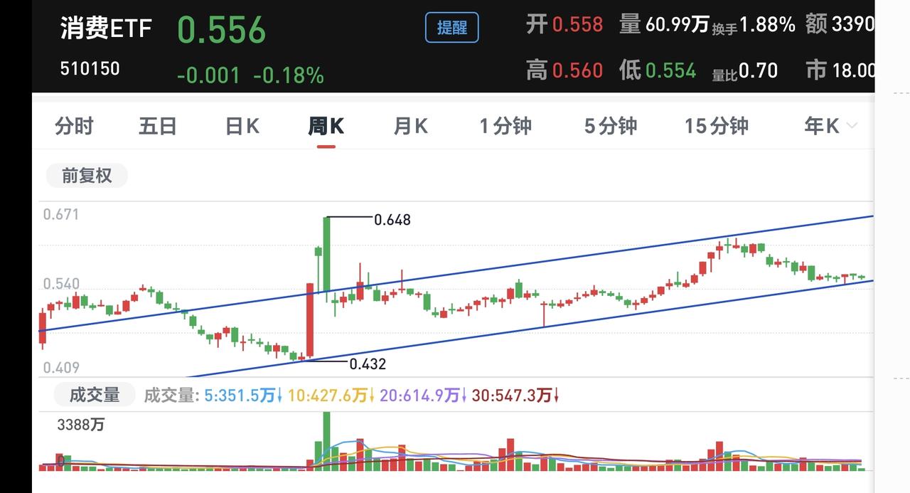 基金:消费板块可不可以考虑进场 消费板块是一个好板块,是许多人都持有的板块,但2025年的表现并不好,这个板块全年上涨了5.10%,上涨幅度在板块中应该是排名靠后。 我们来看一下下面的截图2,这是消费板块日K线图,从图中可以看出,我画了两条倾斜向下的斜线,这是消费板块日线级别下跌通道,前段时间上涨突破了这个下跌通道的上轨,也就是说,消费板块日线级别下跌趋势已经被改变。 我们来看一下下面的截图3,这是消费板块周K线图,从图中可以看出,我画了两条倾斜向上的斜线,这是消费板块周线级别上涨通道,现在的位置处于这个上涨通道中,也就是说,消费板块周线级别处于上涨趋势中。 从日线级别可以看出,前段时间跌破了下跌通道的上轨,突破上轨的时候可以考虑要不要进场,从周线级别可以看出,现在的位置距离上涨通道下轨很近,这样的位置也是可以考虑要不要进场,所以,不管是从日线级别看,还是从周线级别看,现在的位置都是可以考虑要不要进场。 我每天都会分享我的观点,我的观点只代表我个人的看法,不能作为你操作的依据,据此操作后果自负。