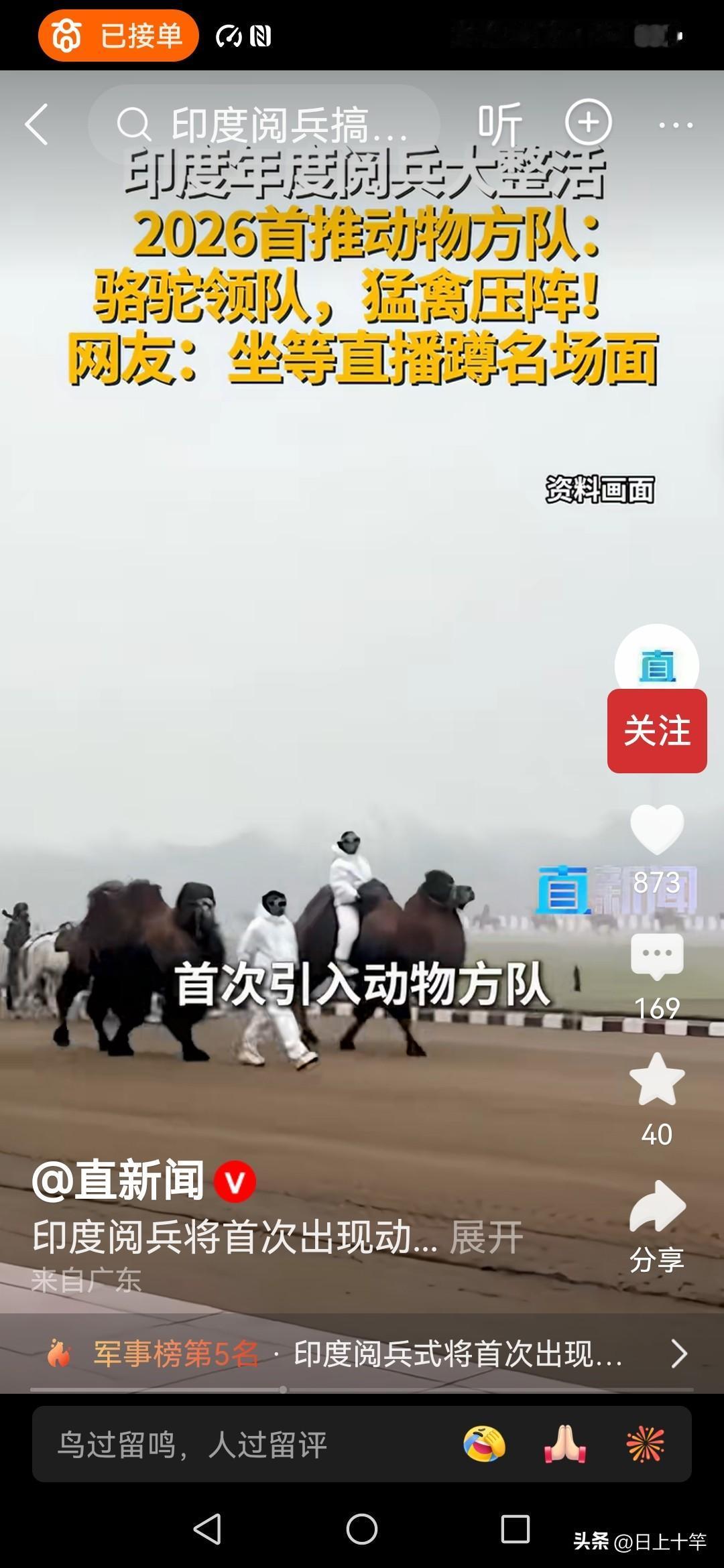 印度2026阅兵式将首次进行人兽混演! 除了传统的摩托车杂技,空中飞人,走钢丝这些外,印度阅兵正在不断推陈出新,首次引入动物方队, 计划是两匹双峰骆驼打头,然后是山地矮种马开路,最后是猛禽和印度本地犬压阵! 这阵容和架势绝对能让人耳目一新,争取26年阅兵更上一层楼!