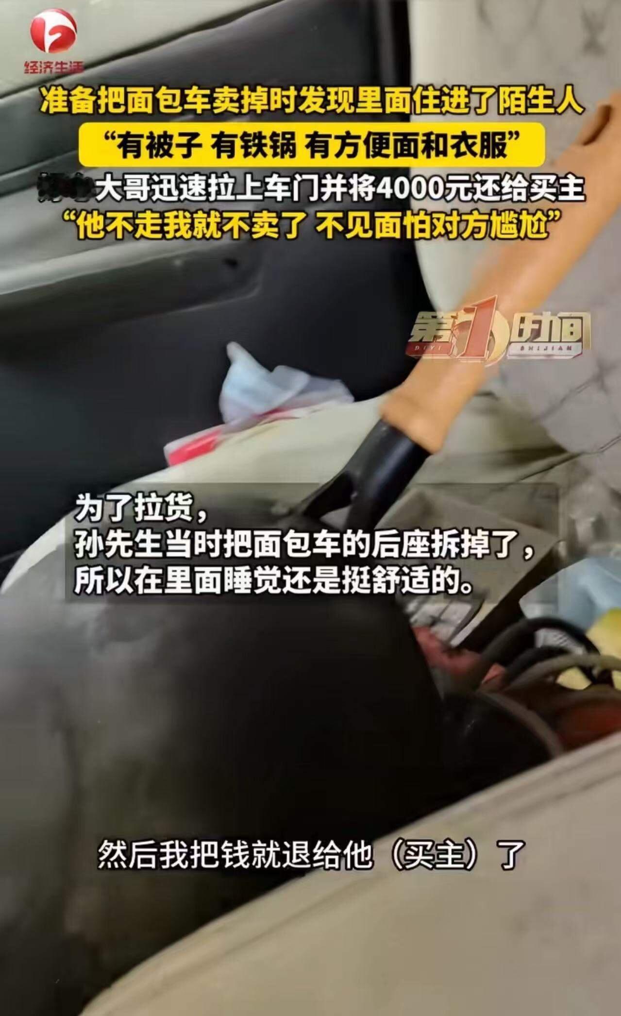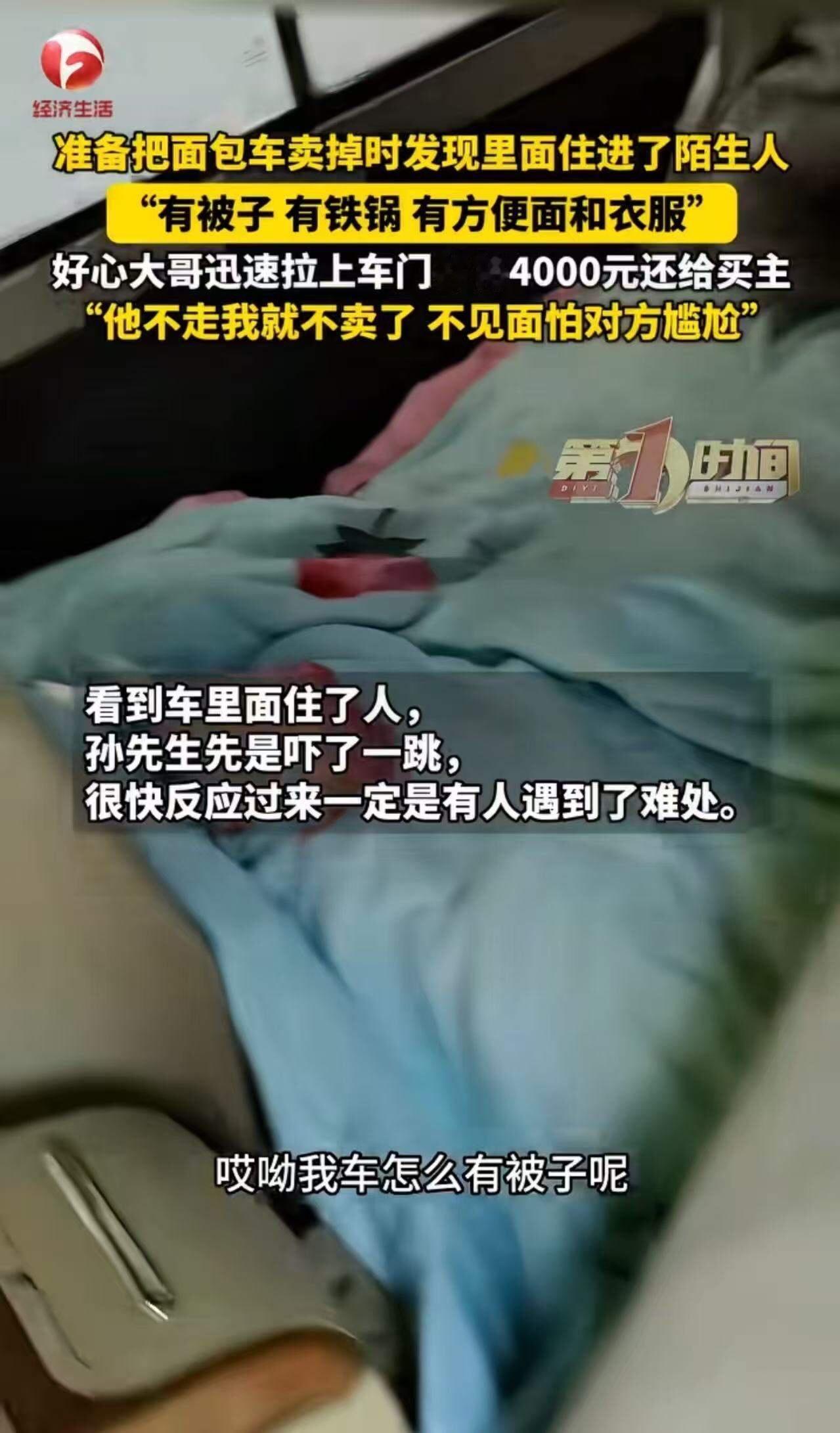 “这个大哥真是大好人!”河南周口,大哥准备把面包车卖掉,发现里面居然住了一个陌生人,里面有被子有铁锅有方面和衣服,大哥迅速将车门拉上,而他接下来的做法,让人不禁为之泪目!网友:真的大爱!一般人做不出来! 这个大哥真是大好人!河南周口的他,原本只是打算把一辆闲置已久的面包车卖掉,没想到,却在整理的过程中,发现了一个令人心碎的秘密——车里居然住着一个陌生人!这个陌生人蜷缩在角落里,身上盖着破旧的被子,铁锅和一些衣物随意堆放,似乎已经在这里生活了很久。面对这个突如其来的“入侵者”,大哥的第一反应,是惊讶、疑惑,但很快,他的心被一种难以名状的温暖填满了。 他没有第一时间报警,没有责怪,也没有冷漠地离开,而是选择了站出来。大哥轻轻拉上车门,既是为了保护这个陌生人,也是为了给他一些安全感。他用平静而坚定的语气安慰:“你在这里,不要怕,我会帮你的。”随后,他没有犹豫,立刻决定要为这个流浪的陌生人提供帮助。 他打电话联系了社区志愿者,安排好食物和住所,还亲自陪着这个陌生人去做身体检查,帮他联系家人或寻找一份新的工作。更令人动容的是,大哥在朋友圈分享这件事后,很多网友纷纷点赞:“真是大爱!这样的人,社会需要更多!”有人感叹:“在这个快节奏、高压力的社会里,这样的善良实在难能可贵。”也有人说:“这不仅仅是善心,更是一份责任感,是对人性的坚守。” 这件事情让我深思:我们每天在追求物质的同时,是否也在忽略了最基本的人性关怀?在我们习惯于用冷漠和疏离来应对陌生人时,大哥的行为像一面镜子,映照出我们心底那份被社会边缘化的善良。善良或许在某些时候会被视作“软弱”,但正是这些善举,让这个社会变得更加温暖。 或许,我们每个人都可以像这位大哥一样,在日常生活中多一点关心,少一点冷漠。这不仅仅是帮助别人,更是在用行动告诉自己:这个世界上,真正的幸福,来自于给予与关怀。让我们都成为那份温暖的传递者,让善良成为我们最坚实的底色。因为,真正的大爱,不是轰轰烈烈的宣言,而是点滴之间,暖人心扉的细节。河南暖心男孩 好人 暖心好人 司机好人 好人的故事