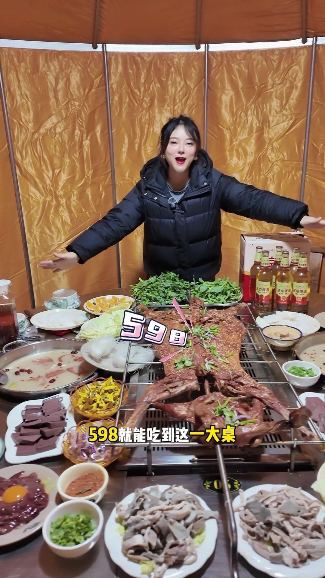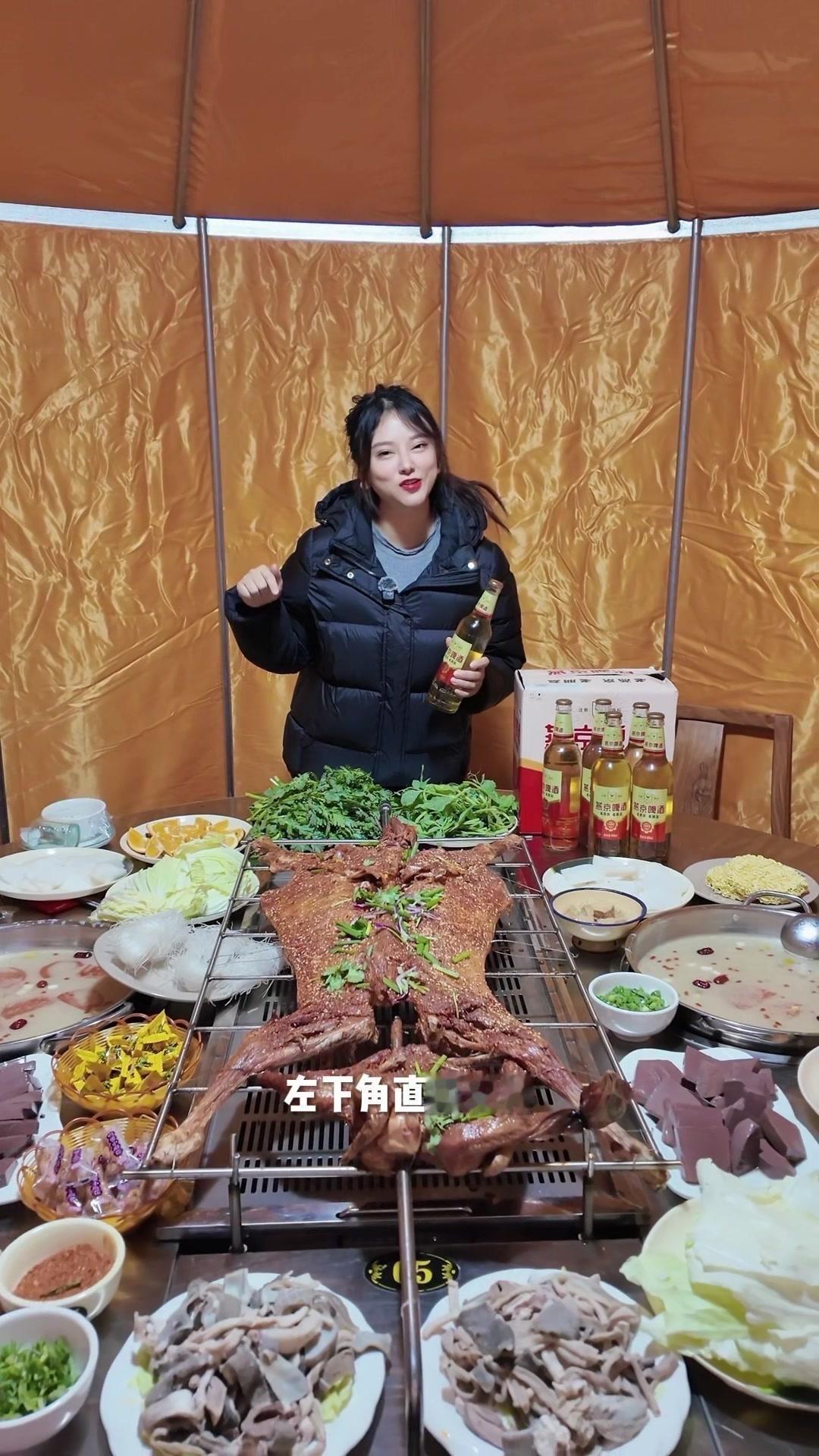 重庆598元吃现烤雪山活羊!🌿重庆降温了,就该整只烤全羊才够味!这家渝津烤全羊真的把性价比拉满,598元就能承包一整桌硬菜。 现点现烤的内蒙雪山活羊必须吹爆!外皮烤得焦香酥脆,咬下去"咔嚓"一声,内里的肉嫩到飙汁,蘸上干碟直接香迷糊~ 套餐还包含一只烤鸡,两个鲜美的汤锅,羊肝、羊杂、羊血这些下货都配齐了,加上自助的时蔬、水果和小吃,再送8+1饮料,吃的喝的一站式搞定,请客聚会简直不要太合适! 左下角直接安排,位置就在江津万达莲花石公园,这个冬天的第一顿烤全羊就来这儿~