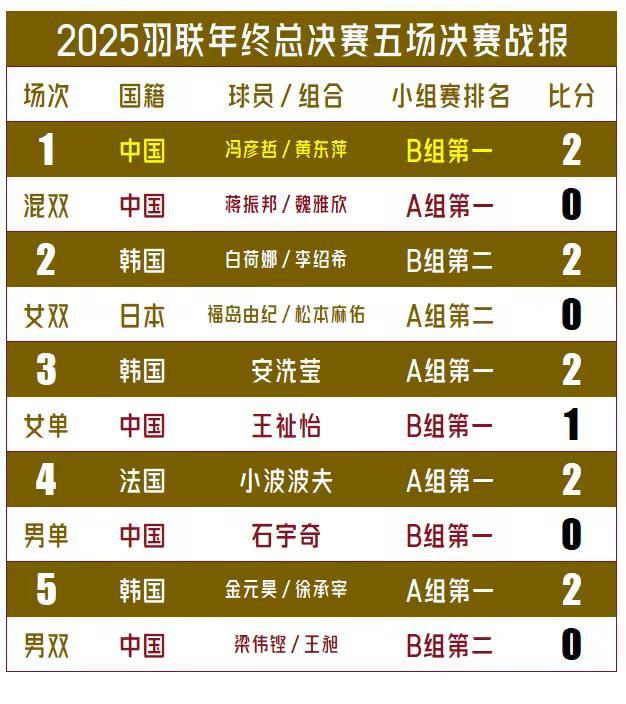 【2025世界羽联年终总决赛落幕!国羽四兼项进决赛,一冠四亚收官!】男女单大都是亚军,男双斩获亚军,女双未进决赛,混双包揽冠亚军。混双依然是国羽不可撼动的压舱石!