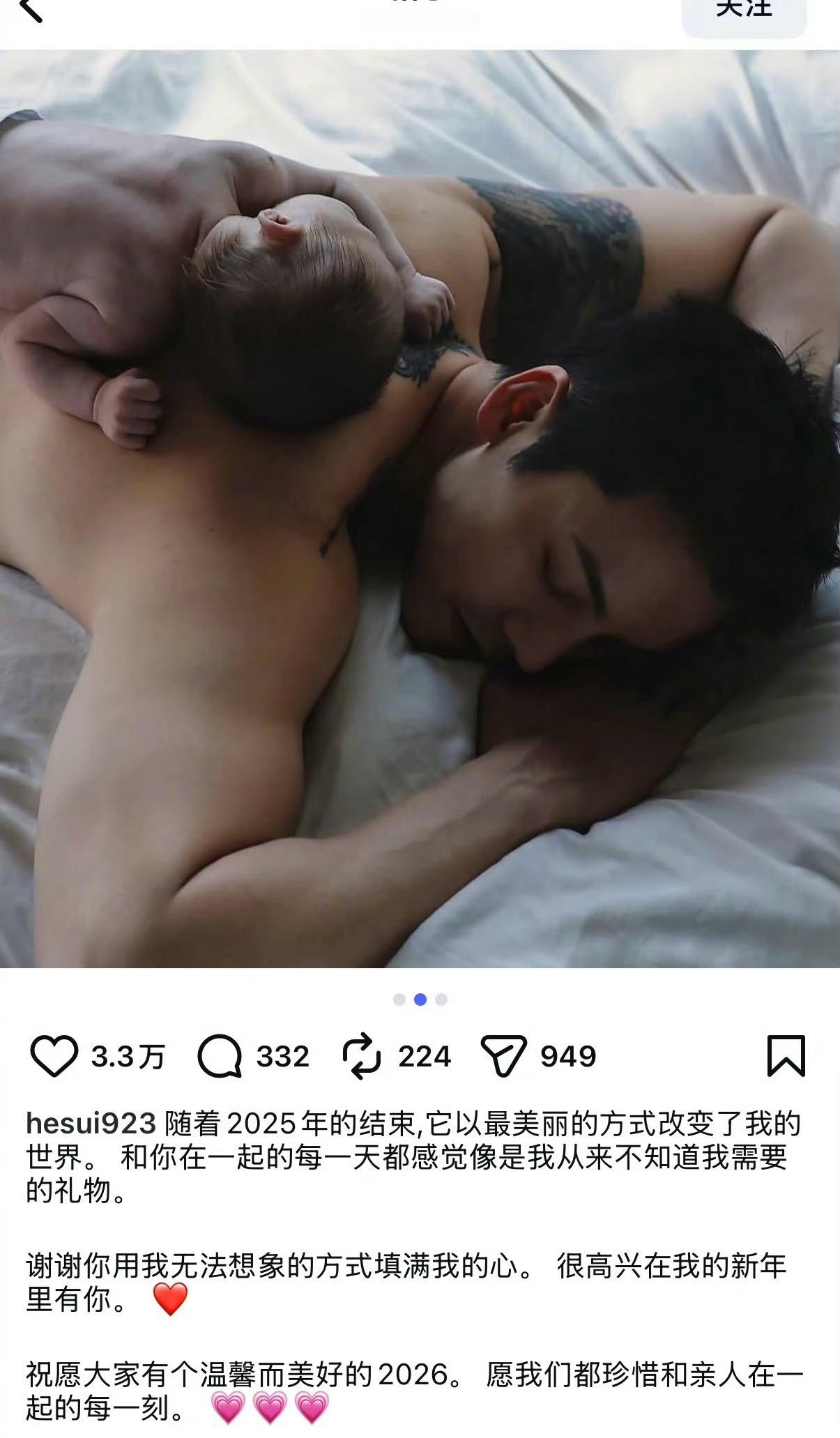 特别岁月静好的画面🥹何穗晒了儿子趴在陈伟霆背上skintoskin的照片