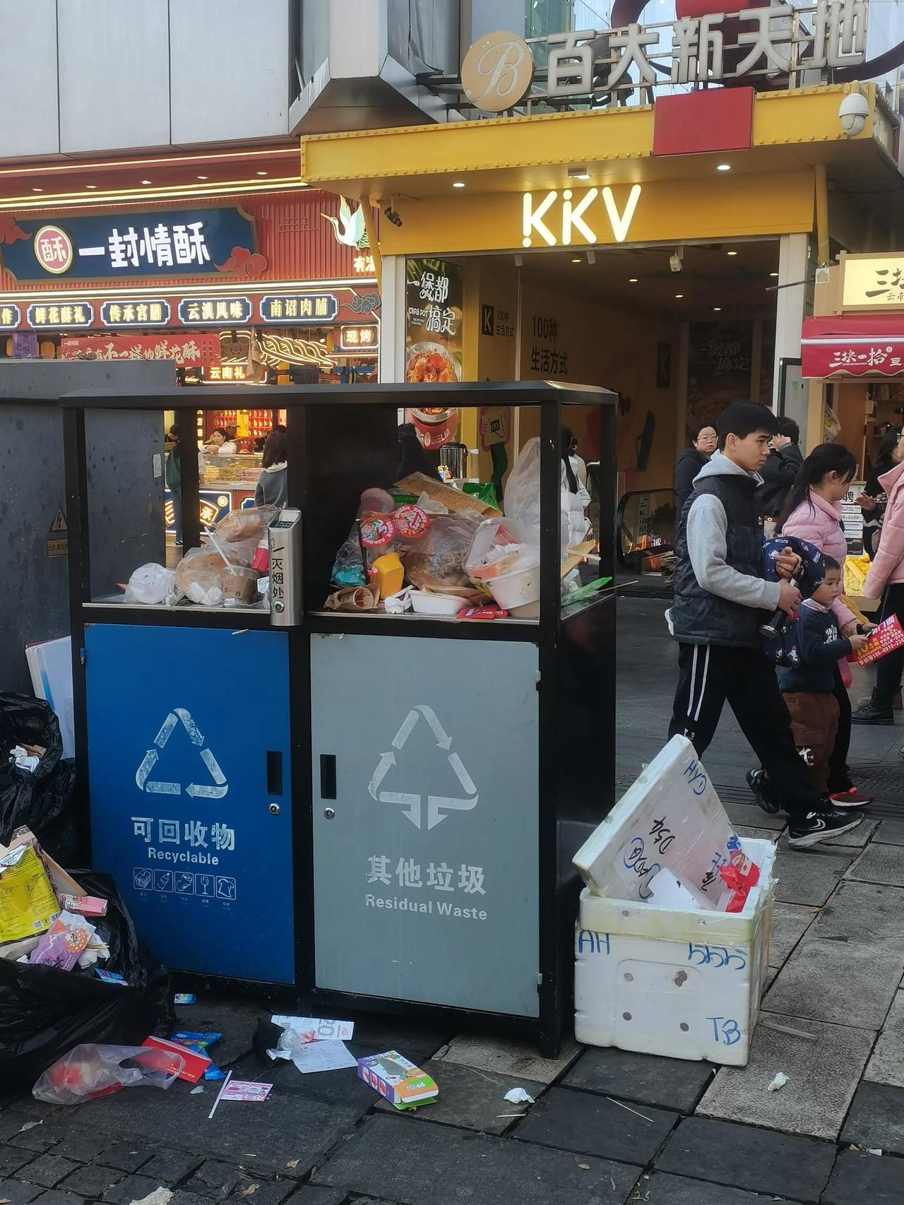 现在南屏街的这个垃圾桶都是改为超大的了,有一人左右高了,但是还是不能满足需求!冲心始终是中心!