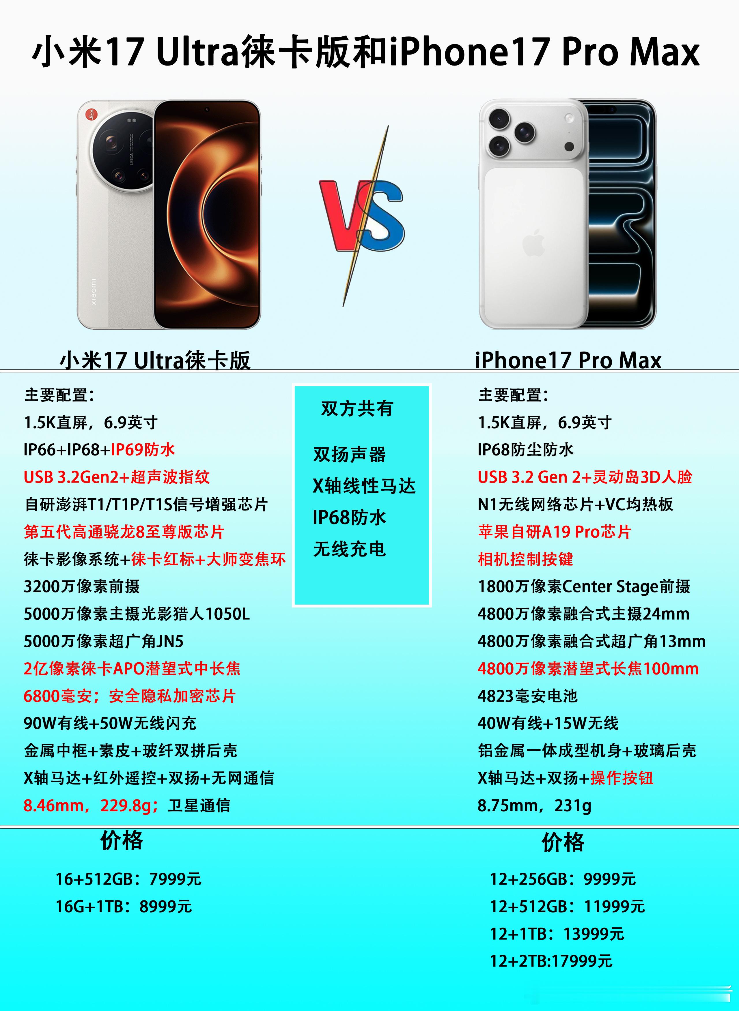 小米17 Ultra徕卡版,能撼动iPhone17 Pro Max的用户吗?有很多网友在纠结,是选择小米17 Ultra徕卡版还是选择更贵的iPhone17 Pro Max?这两个起售价差2000元,还是有些影响的。小米17 Ultra徕卡版的侧重点在相机,硬件上基本没短板。一英寸超大底主摄、徕卡两亿像素潜望式中长焦以及变焦环,这些都是iPhone不具备的。它就是适合经常用来拍照,可玩性方面要更丰富。iPhone17 Pro Max,影像也很强,尤其是视频录制方面。配置上也没啥可挑剔的,就是价格比较贵,它就是适合预算充足但不怎么了解手机的用户。不知道怎么选高端,建议直接买iPhone,系统的耐用性还是有优势。话说回来,今年小米17系列销量距离300万销量很接近了,虽然和iPhone17系列有较大差距,但也是国产高端旗舰手机中销量数一数二的存在。小米17 Ultra徕卡版的产品力不弱,但想要抢iPhone17 Pro Max的份额没那么容易,能吸引一小部分我觉得就很成功了。