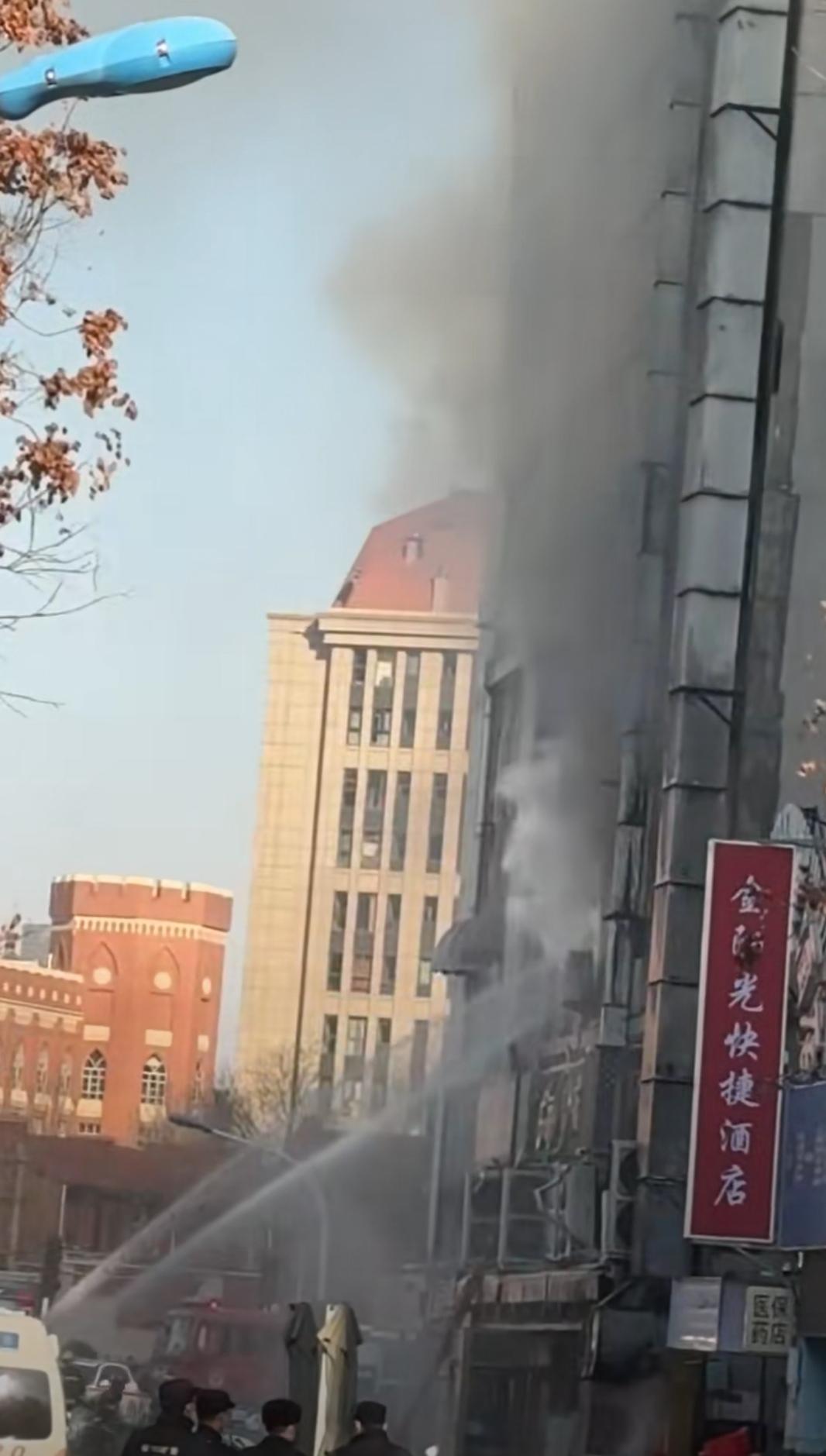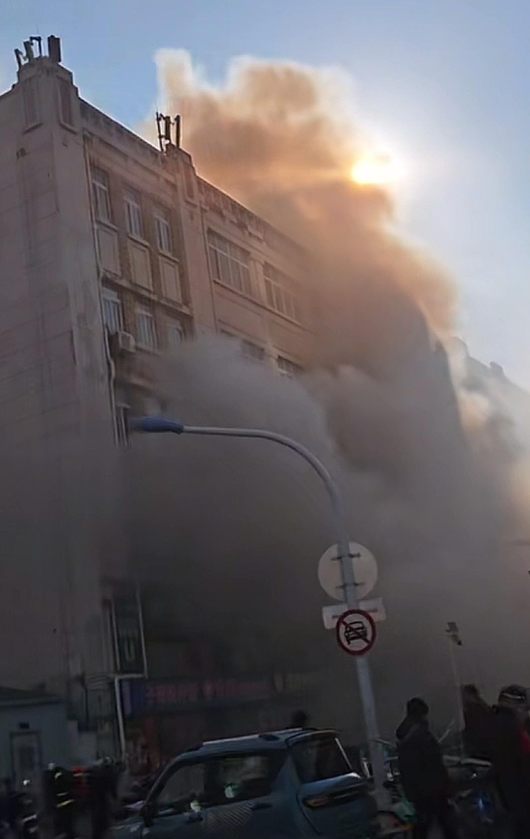 突发!今天(1月2日)下午,有多位网友发布视频称,天津和平区滨江道一建筑突发火情。从网传视频中可见,火灾现场浓烟滚滚,遮蔽了大部分街道,着火建筑窗户有火苗窜出。从周边建筑可判断,发生火情的位置应该位于滨江道与大沽北路交口附近。事发后,有多辆消防车赶赴现场进行处置。具体事发原因及损失情况有待官方通报。希望人没事。社会热点 今日天津突发火情 天津和平区滨江道一建筑发生火情