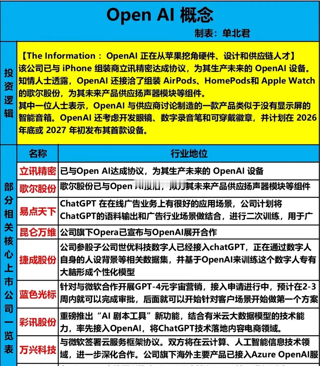OpenAI的硬件“核弹”终于来了!无屏AI设备将引爆AI新战场!2026年Q1,全球科技圈最危险的变量来了——OpenAI即将发布自研语音大模型,并同步推出首款无屏AI硬件设备。这不是简单的功能升级,而是一场对智能终端入口的“降维突袭”。据内部消息,OpenAI的新语音模型已实现毫秒级响应、自然打断、情绪感知三大突破,彻底告别当前AI答非所问、机械复读的尴尬。更劲爆的是,它将搭载于由前苹果设计灵魂Jony Ive操刀的实体硬件,可能是AI胸针、耳机或随身终端,主打无屏、私密、主动服务,定价直指高端市场。这意味着什么?软件公司开始抢硬件饭碗,OpenAI不再满足于API分润,而是要直接切走消费电子行业的蛋糕;交互革命正在大变革,当AI能像真人一样听懂潜台词,手机屏幕可能沦为备用选项;生态战争全面升级,苹果正加速推进Apple Intelligence硬件整合,谷歌押注Gemini终端,而OpenAI选择轻形态+强智能奇袭。供应链消息称,相关声学与低功耗芯片订单激增,代工厂进入保密量产阶段。可以预期,一旦产品落地,或将重塑可穿戴设备格局,催生千亿级AI个人助理新赛道。a股财经曝林俊杰曾示爱到田馥甄差点翻脸