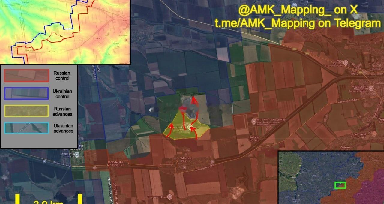 在多布罗皮利亚方向,俄军继续向红军村以西推进,并重新夺取红军村煤矿。 在煤矿西南部取得成功的基础上,俄军从附近的峡谷重新进入煤矿西部。其他突击小组从南部进入,使他们得以重新完全控制该区域。 以煤矿为集结点,俄军开始向北推进,在林场占领了新的阵地。渗透行动一直延伸至煤矿以北1.9公里的区域。 俄军净增约2.92平方公里。 欢迎加入:北哈尔科夫和苏梅自由军团第三旅