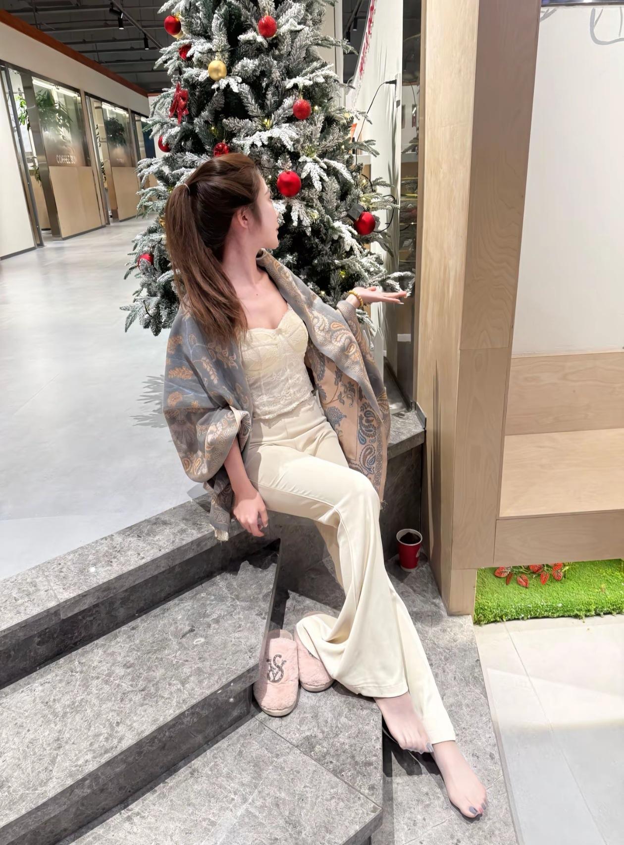 冬日暖阳下,圣诞树旁,享受悠闲时光