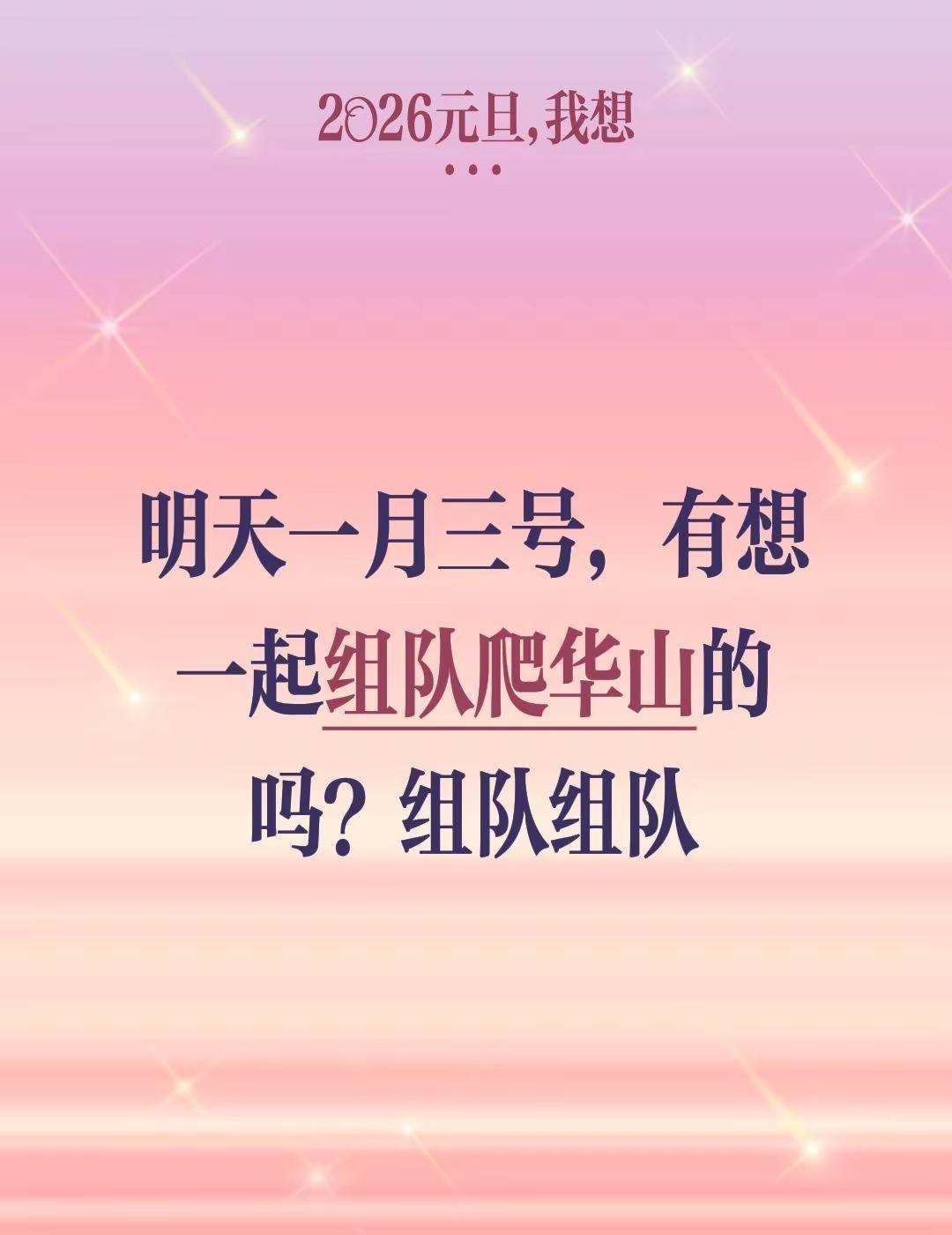 明天一月三号,有想一起组队爬华山的吗?组队组队