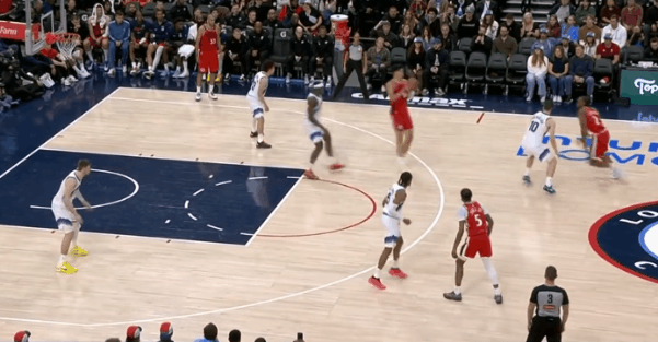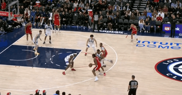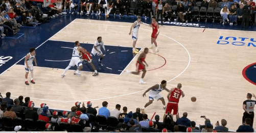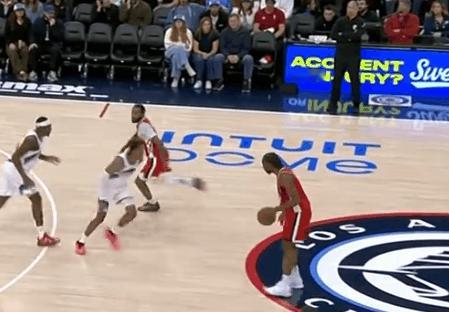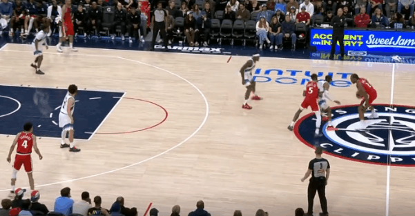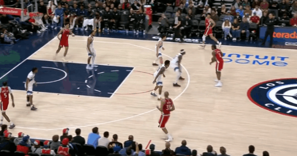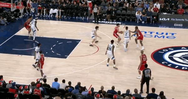 逐帧拆解:伦纳德技术细节解析,狂砍45分&末节发力收割比赛图1柯南上提拿球策应,伦纳德立即前往底角为巴图姆设置“下掩护”(Pin Down),巴图姆见克莱顿采取“倒扣防守”(Top-Lock)溜底线空切篮下反制,但没接到球。第一波战术发起不力,伦纳德回身接球硬解,收回前脚后顶着米哈强投三分命中。图2炸球拉回至三分线启动单打硬解,变向调动防守人重心后迅速回拉并收回前脚,强投三分稳稳命中。紧接着。图3,LOGO位置和琼斯发起挡拆配合+翻转掩护角度后的二次挡拆发起,伦纳德胯下运球后借助右侧的掩护墙延阻追防的科迪,行进间右手悬浮合球的同时完成急停,坚决出手借掩护持球三分,稳稳命中。慢动作细节呈现:图4。图5借助琼斯中路上掩护上提接球,顺势衔接和柯南的挡拆发起要到菲利错位。行进至右翼启动单打:使用自己常用的[单打起手式]——更简洁版本的“连续胯下”调度防守人重心后,回拉的同时完成右手悬浮合球,随后坚决出手持球三分手起刀落。慢动作细节呈现:图6。图7伦纳德见巴图姆掌握到球权,立即启动快攻奔向前场。接巴图姆上球前场1打0,单手举火烧天衔接双手倒C暴扣。图8接桑德斯手递手点到克莱顿错位后向右路行进,抢出身位优势后见亨德里克斯从底线前来协防并封堵突破路线,身后又有凯尔追防准备执行夹击,小卡在低位急停后立即出手中距离,稳稳命中。图9抓早期进攻,弧顶持球单打亨德里克斯:胯下攻击防守人前侧脚,随后再迅速衔接胯下配合后脚的“挖步”启动右路突破,行进间对抗接触的瞬间立即急停晃飞防守人,随即出手稍带后仰的中投。图10眼看要失去防守身位,果断伸出长臂从身后将球掏掉,随后立即奔向前场。接队友上球后面对退防的克莱顿,这里伦纳德运用到的一个小技巧是:“大回环”合球后直接起跳——让防守人更加难以判断到“步点”,潇洒的滞空拉杆挑篮打进。拿到单节的第20分,以及平生涯第二高单场得分的45分。不禁让人回想起去年季后赛的这个回合:图11。伦纳德45分快船六连胜快船继续北伐