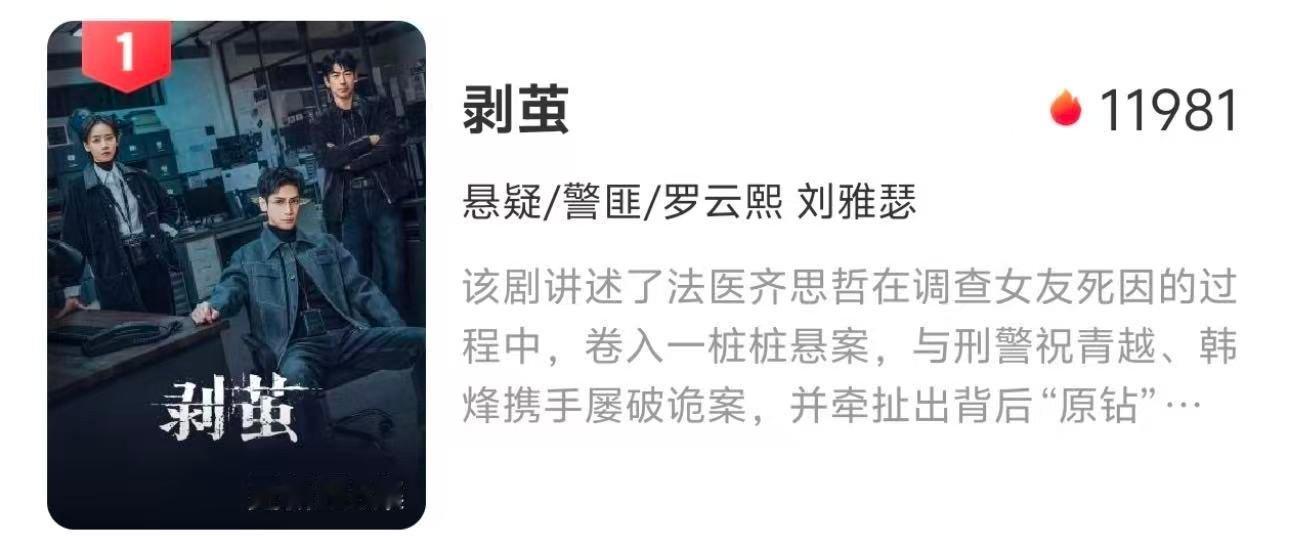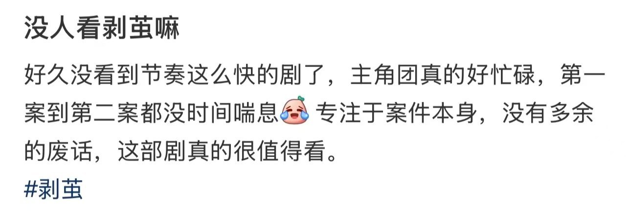 剥茧纯本格推理剧 《剥茧》太对味!纯破案纯缉凶纯本格,无多余剧情,主角团睁眼即办案,写实感拉满!基层公职人员忙碌日常精准还原,案件越看越高能,咪咕登顶热度快破12000,开年悬疑黑马稳了!