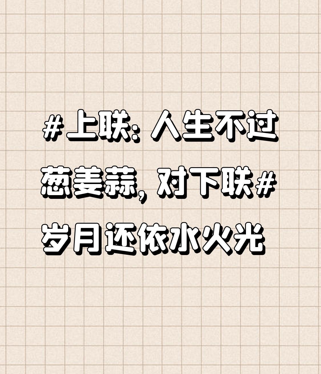 上联:人生不过葱姜蒜,对下联岁月还依水火光