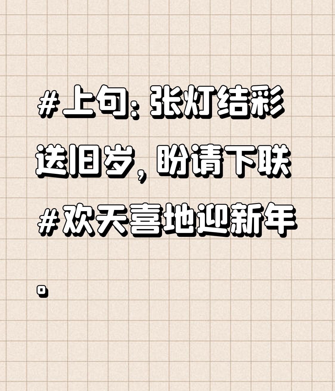 上句:张灯结彩送旧岁,盼请下联欢天喜地迎新年。
