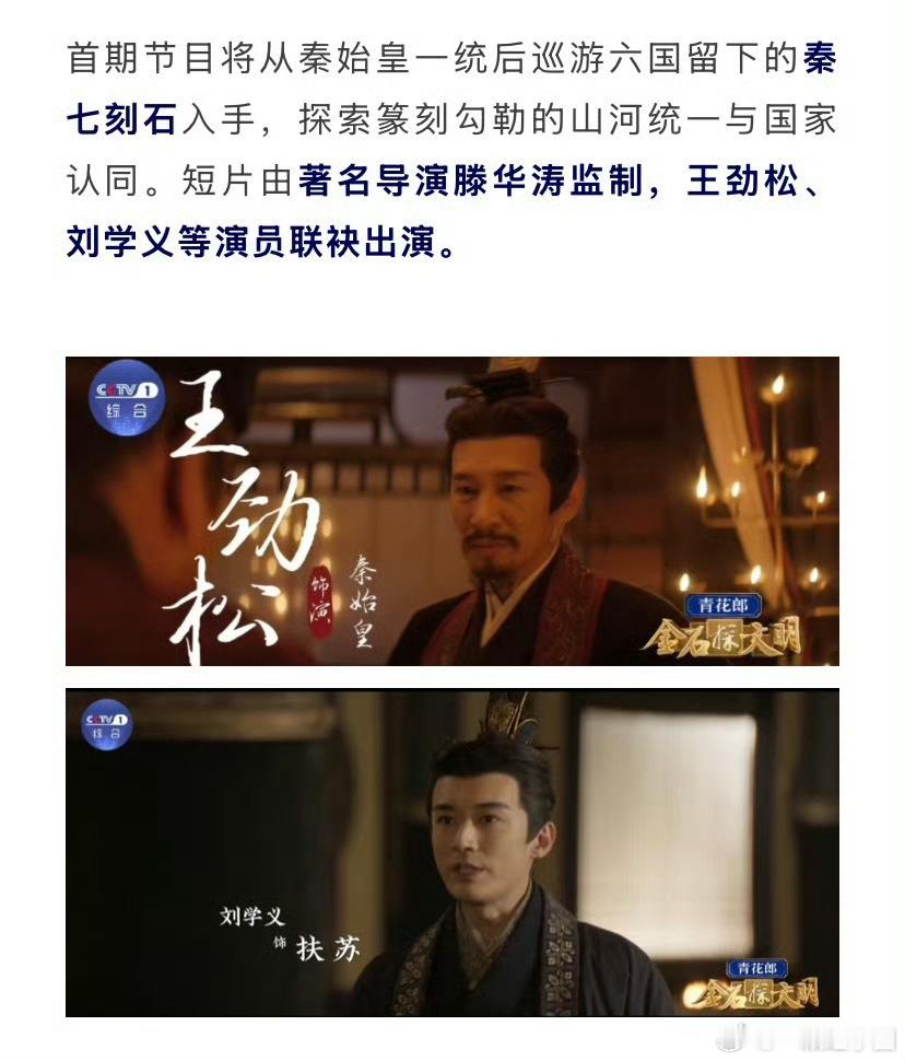 刘学义 新节目《金石探文明》明晚开播!央视开年第一档大型文化节目!滕华涛监制,王劲松、刘学义等出演!CCTV-1黄金档不见不散啊!