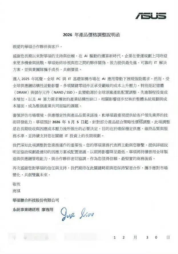 1月5日可以看作一个节点,产品涨价。前两天华硕已经发了公告,将在1月5日针对部分产品价格进行调整。未来不止这一家厂商涨价,也不止电脑,包括手机在内的很多3C产品
