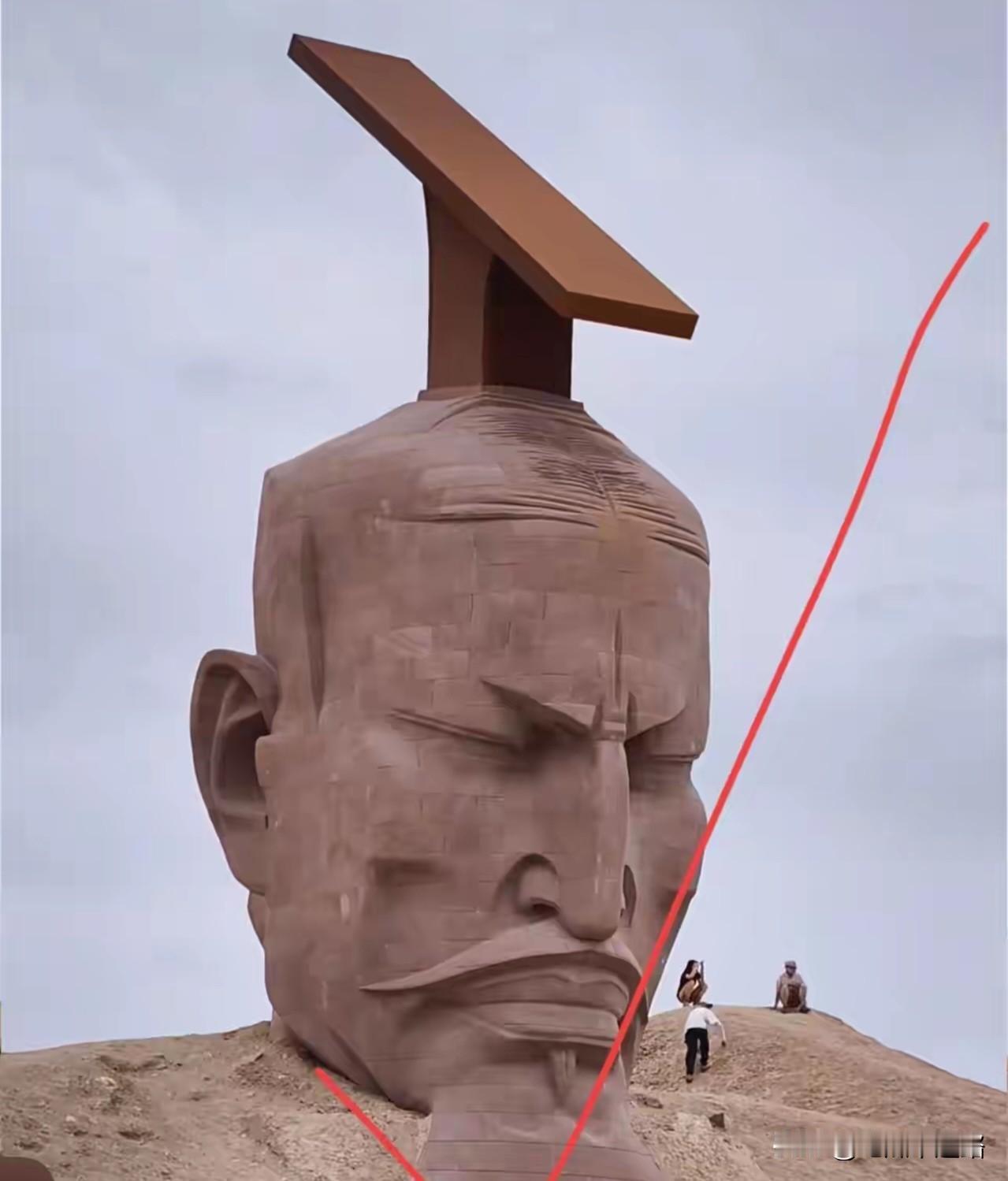 看着戈壁滩上那个孤零零的汉武帝头像,心里真不是滋味。 那模样,说是雄风,倒像是受了天大的委屈,眉头紧锁,眼睛紧闭。好好的一个千古一帝,弄得只剩个脑袋半埋在沙土里,过往的车辆都能瞥见那份憋屈。有人说,这是艺术,大地就是他的身躯。可普通人眼里,这情景难免让人多想。 更让人心里硌硬的是,艺术家张万兴还是个入了美籍的华人。一个远方来客,来摆弄我们的老祖宗,摆弄成这副模样,难免让人心里犯嘀咕。看他以往的作品,风格多是那种扭曲的调调。这就明白了,不是他不懂汉武帝,是他的心思本来就没和我们往一处想。 事情闹到这步,再说搬走挪动,代价确实不小。可当初决定让它立在这里的时候,怎么就没人多想一步呢。艺术可以有个性,但放在这四方百姓都能看见的公共地方,总不能完全不顾及这方水土上的人看着会不会心痛。那不是一块普通的石头,那是很多人在课本里读到的,那个打出汉家气魄的汉武帝。 如今它也只能在那儿趴着了。远远看去,那条路像把刀,基座的石头被说成锁魂的阵,信号塔的影子斜斜打下来。这些说法真假难辨,但能传开,本身就说明这东西立在这儿,让太多人看了不舒服。有些东西,立起来难,想挪开,脸上更挂不住。